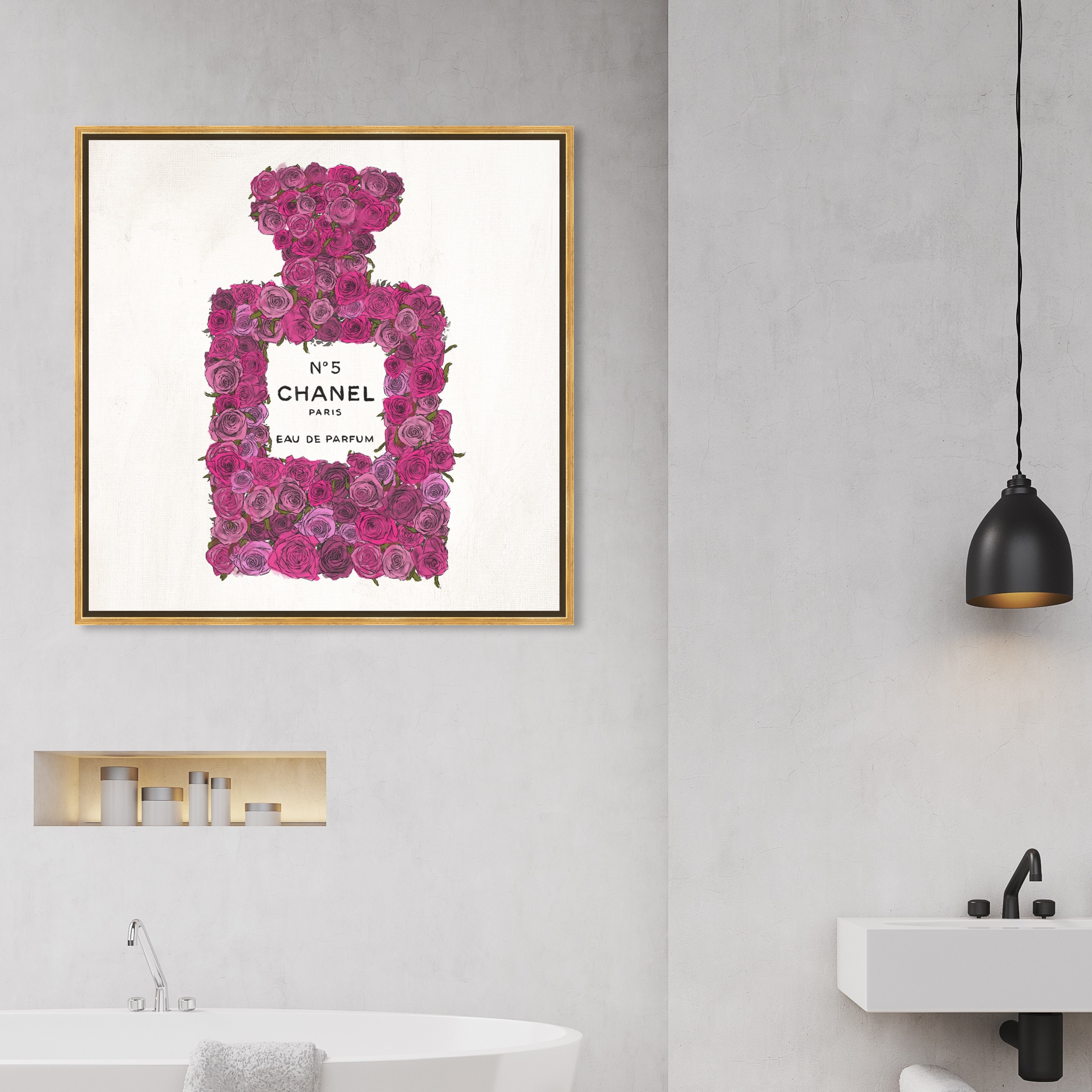 Oliver Gal Fashion and Glam Wall Art Framed Canvas Prints 'Number 5 Rose' Perfumes - Pink, White