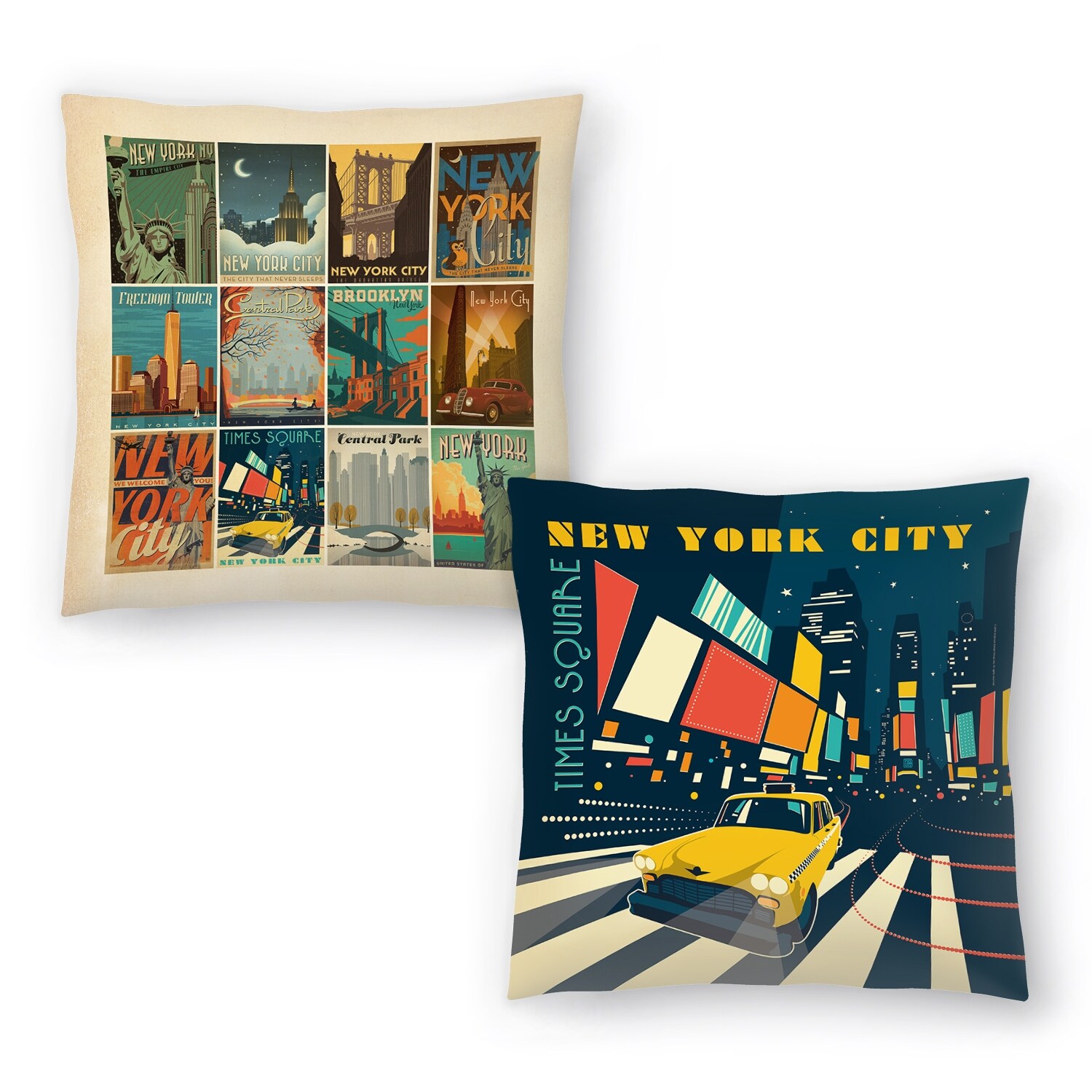 Nyc Times Square and Nyc Pattern Border - Set of 2 Decorative Pillows