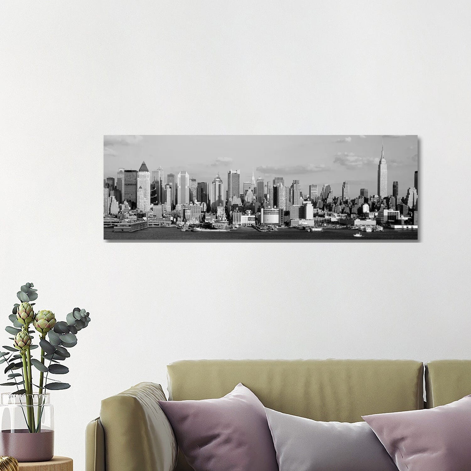 Black and White NYC Night Panorama" Cityscape Wall Art on Canvas
