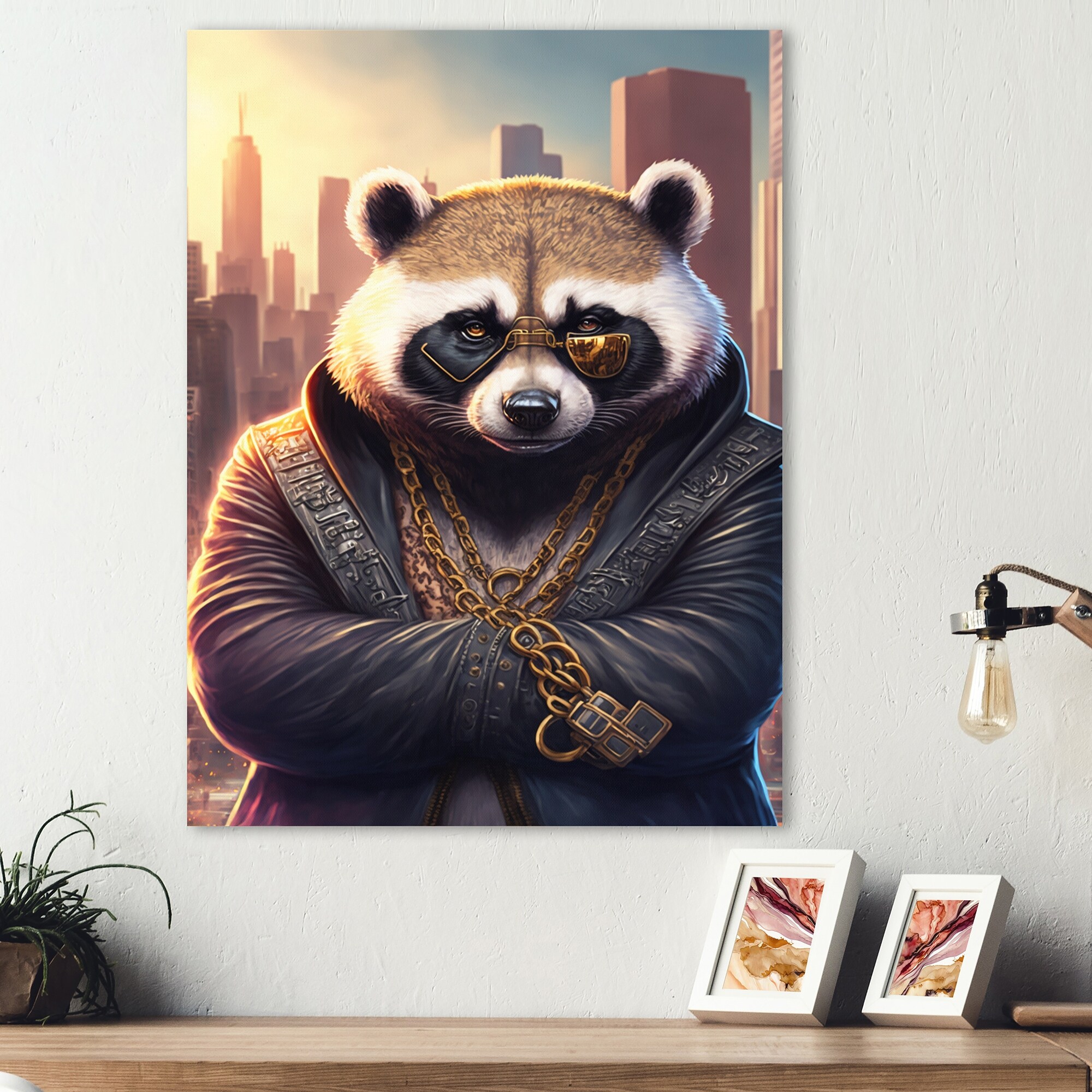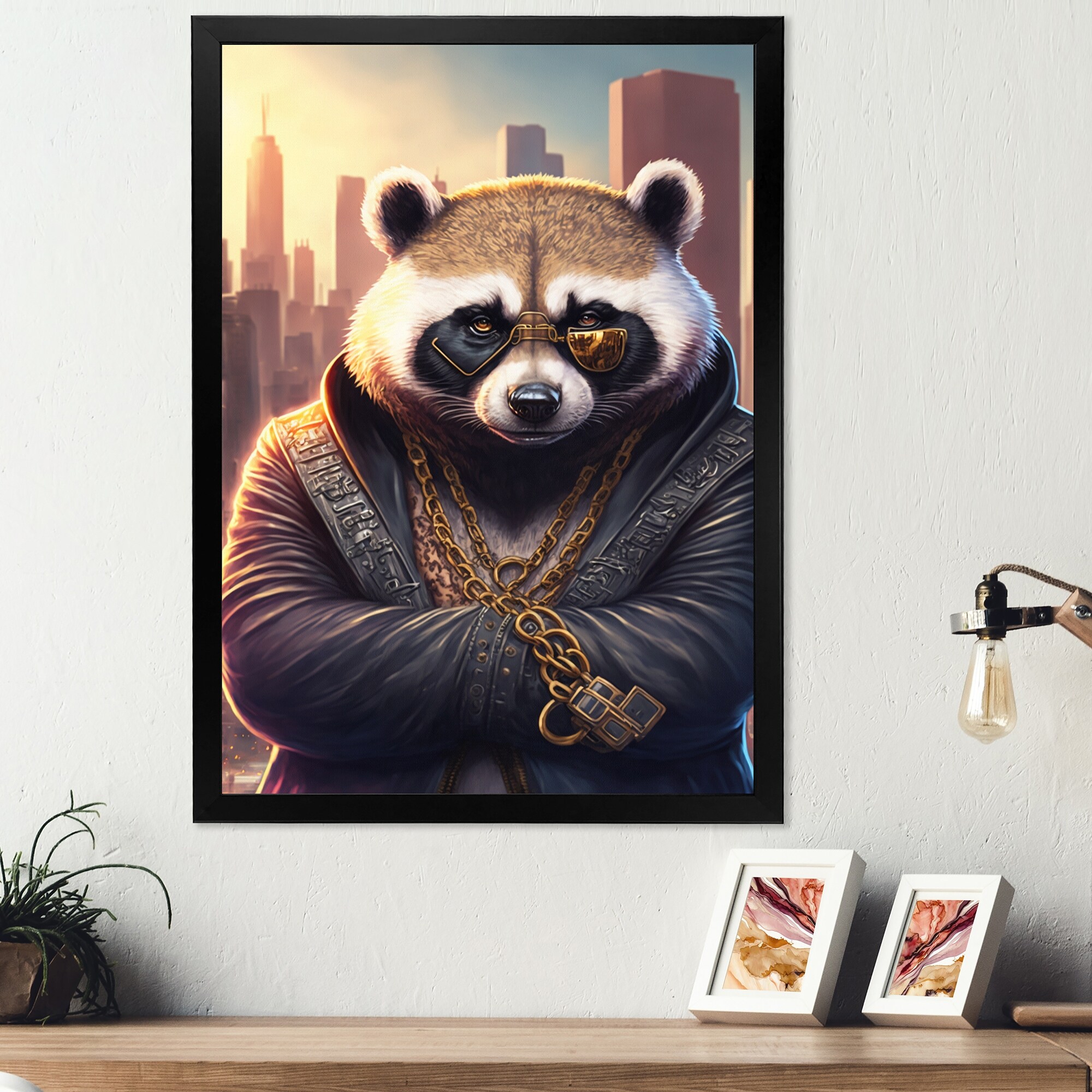 Designart "Panda Gangster in NYC II" Animals Framed Art Print