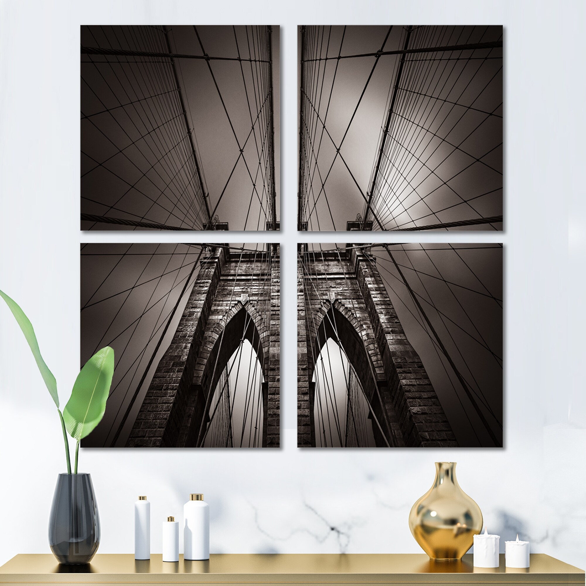 Designart "Brooklyn Bridge in NYC USA" Extra Large Cityscape Wall Art on Canvas