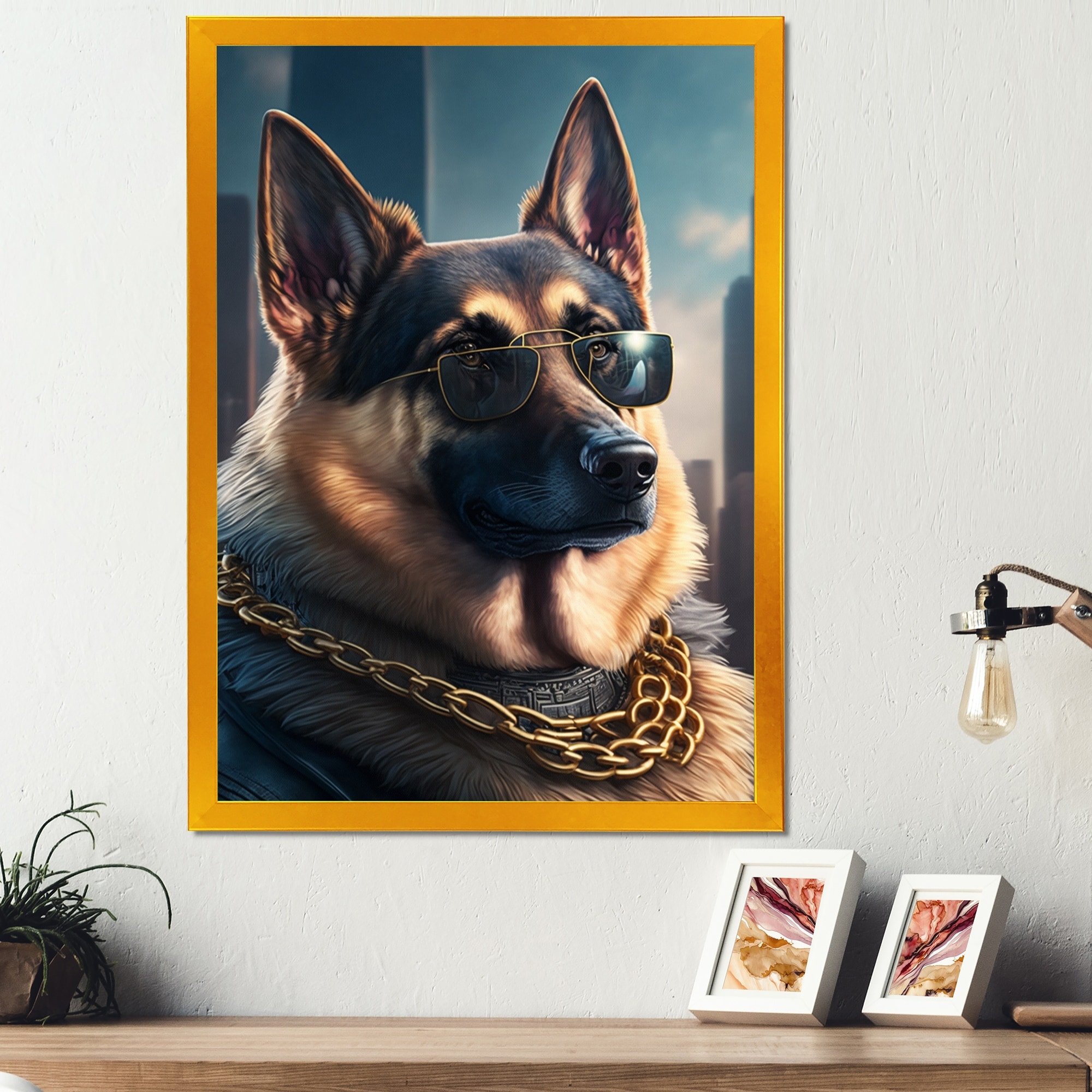 Designart "German Shepherd Gangster in NYC I" Animals Framed Art Print