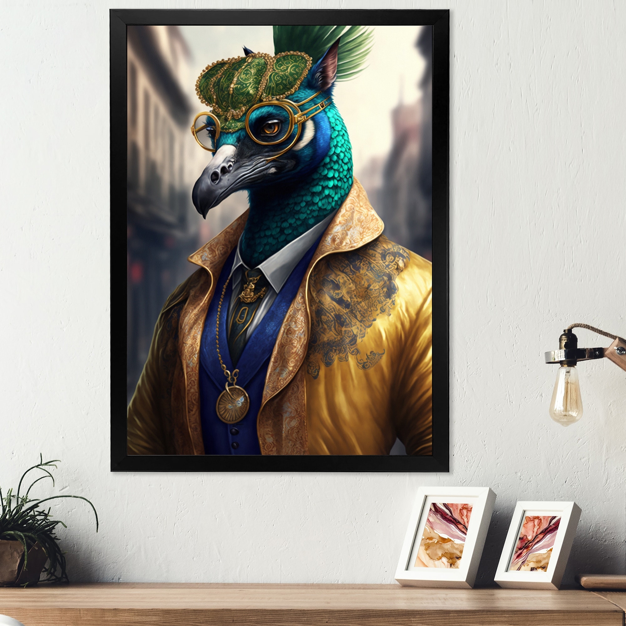 Designart "Peacock Gangster in NYC III" Animals Framed Art Print