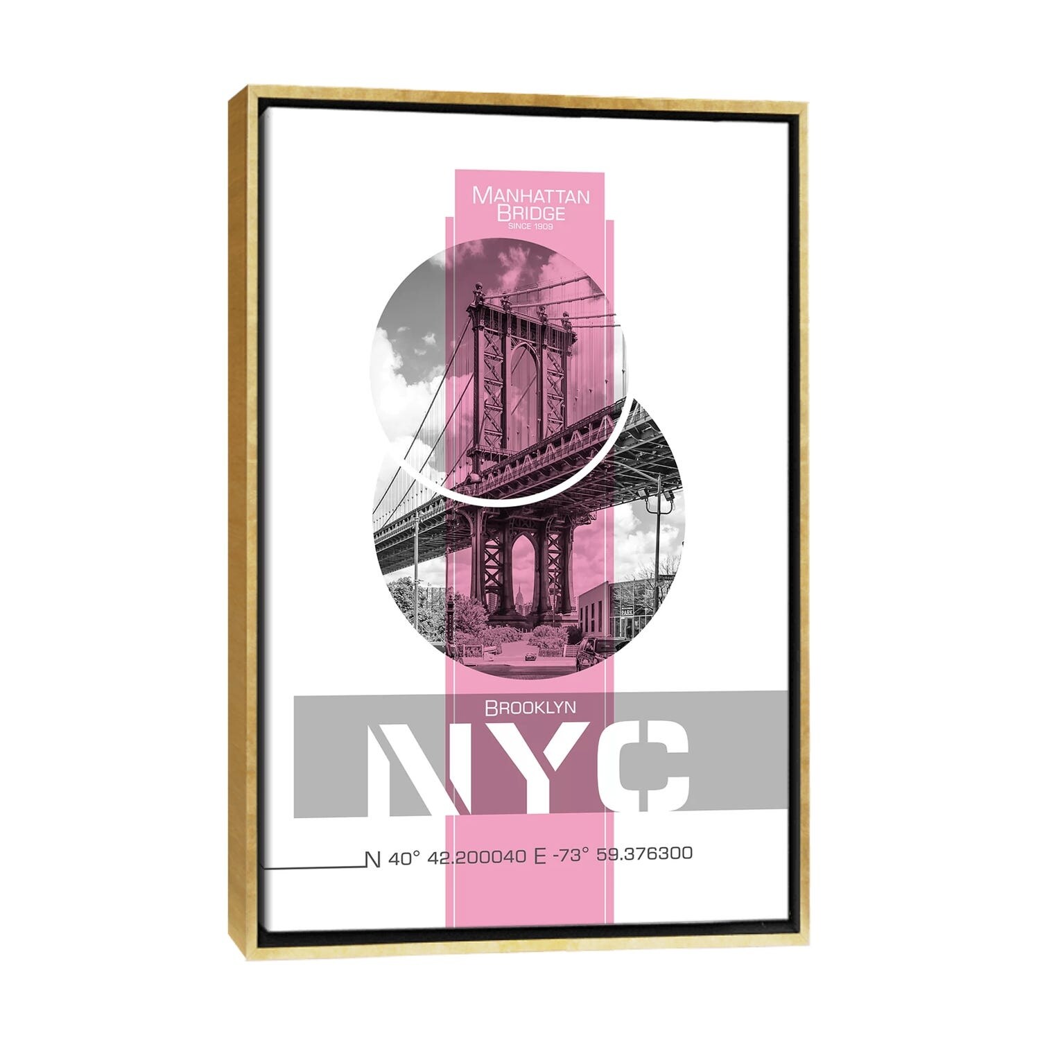 iCanvas "Poster Art NYC Manhattan Bridge Pink" by Melanie Viola Framed