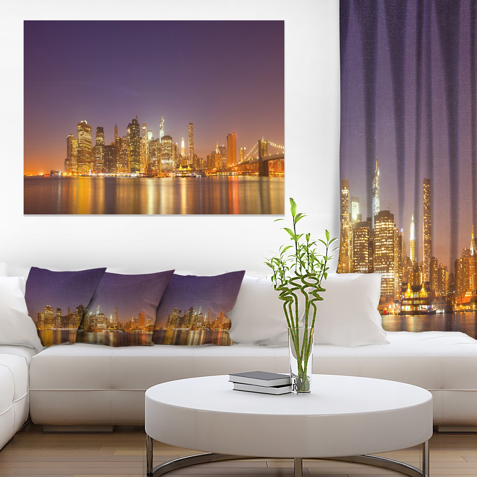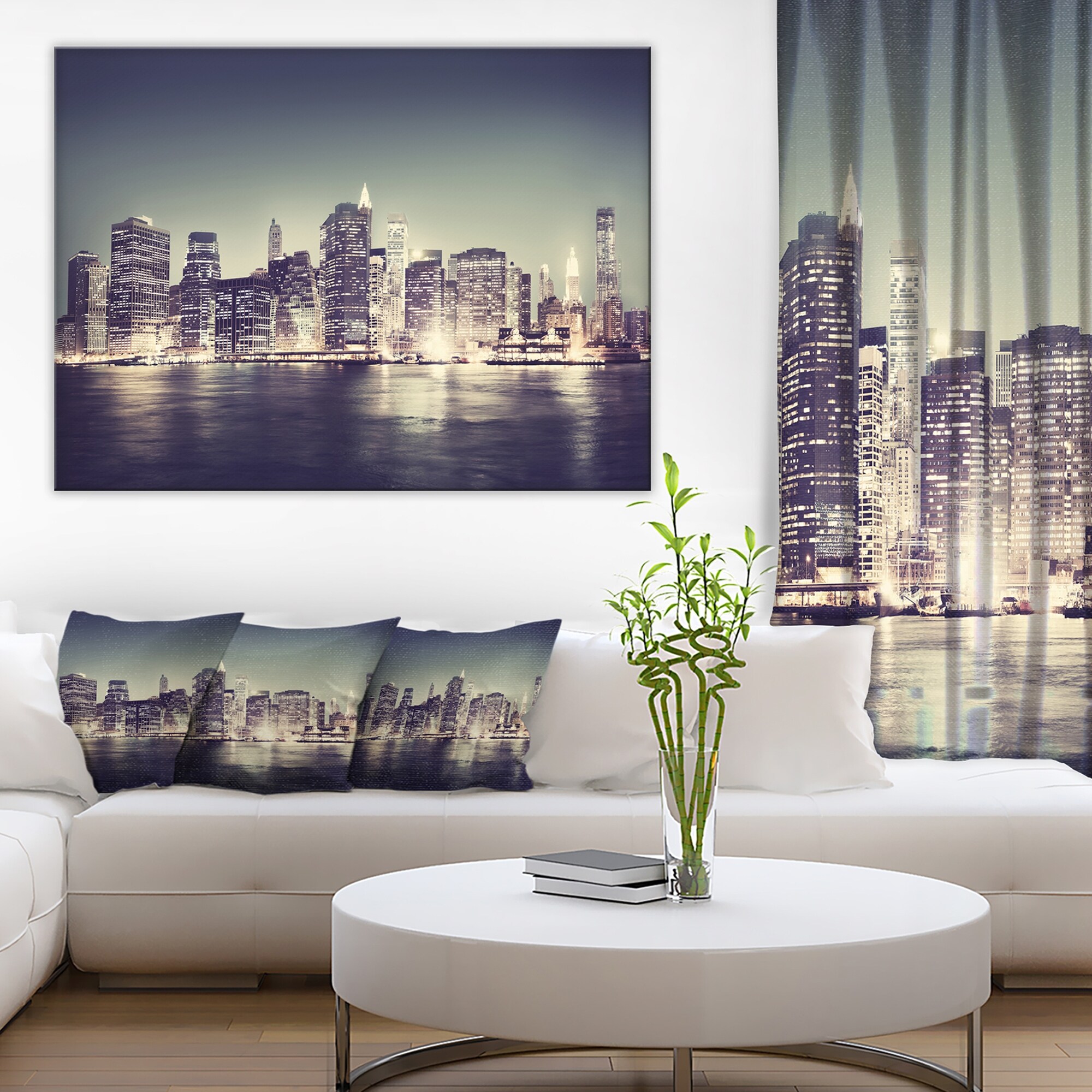 Black and White NYC Night Panorama' Cityscape Wall Art on Canvas