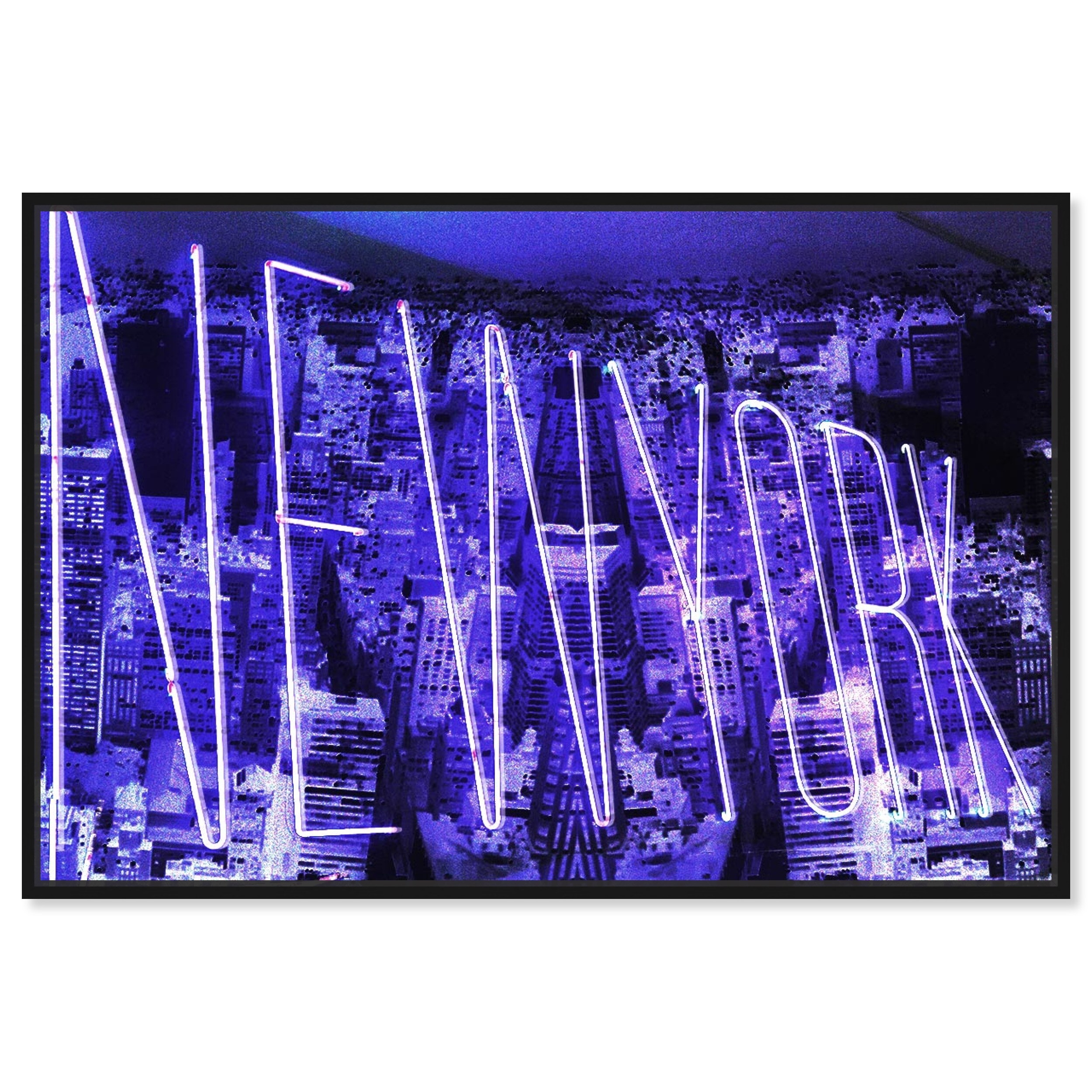 New York Neon, NYC Neon Architecture Modern Black Canvas Wall Art Print for Living Room