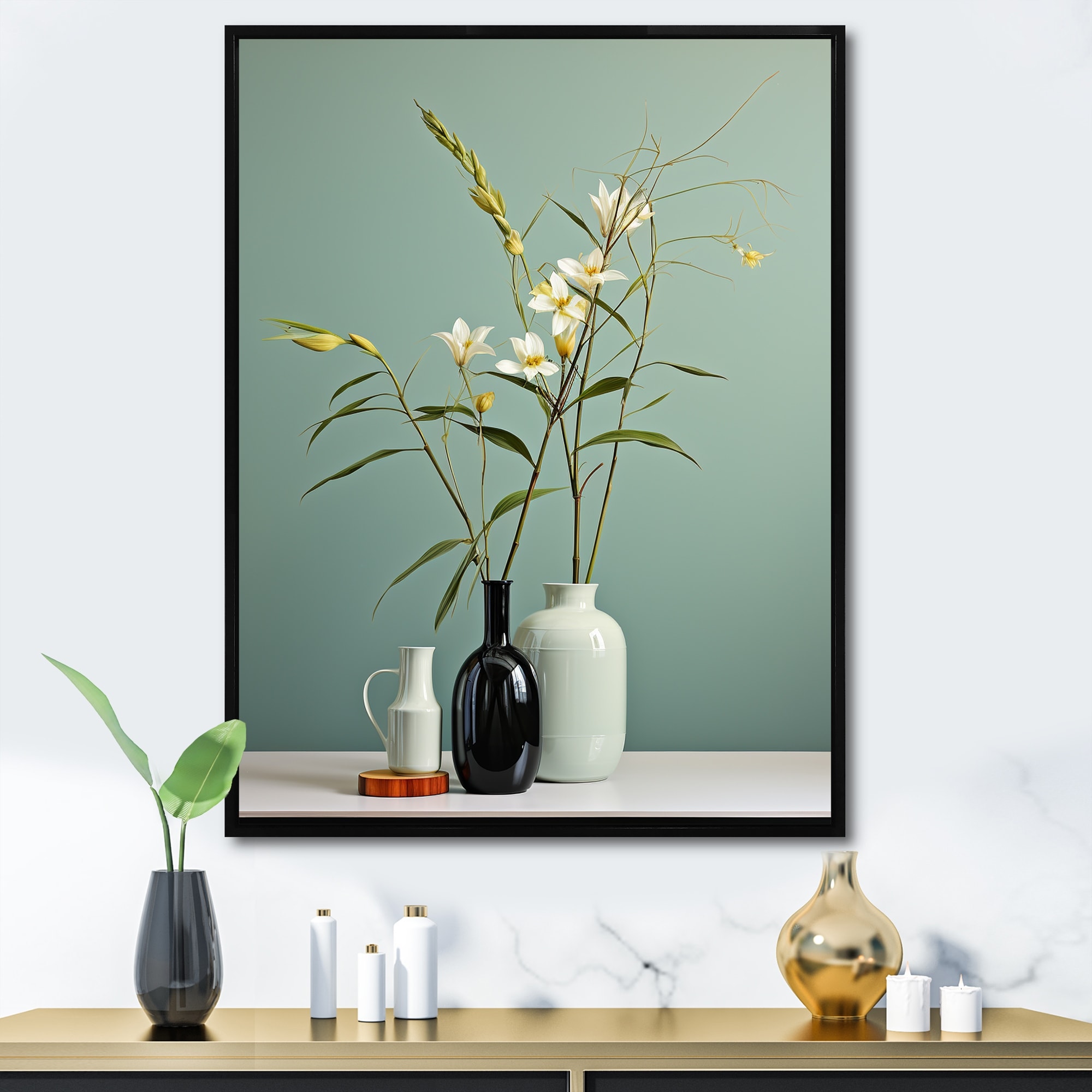 Designart "Teal Green Mid Century Minimalist Oasis Poteries" Abstract Still Lifes Framed Canvas Prints
