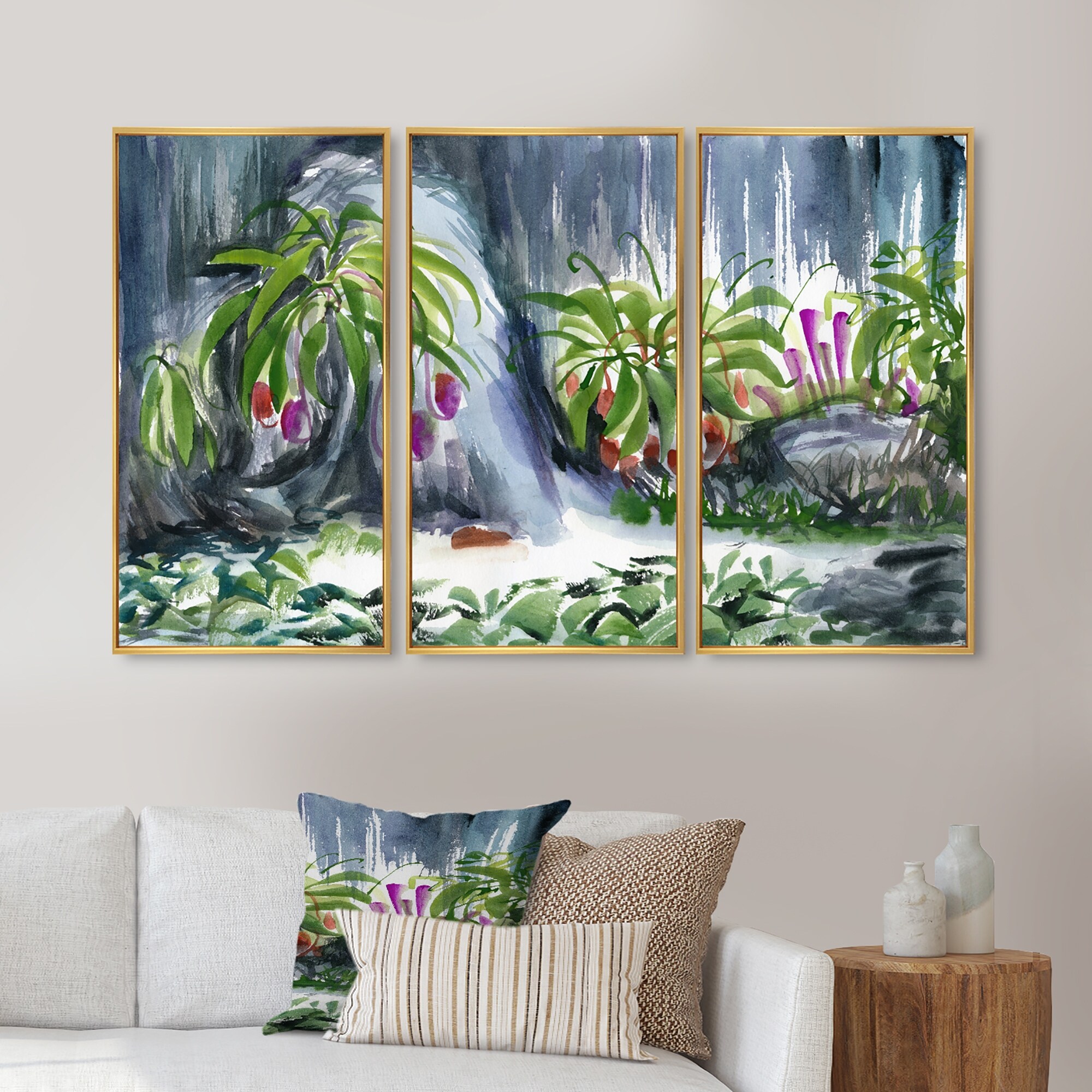 Designart "Tropical Plants Oasis" Farmhouse Framed Wall Art Set of 3 - 4 Colors of Frames