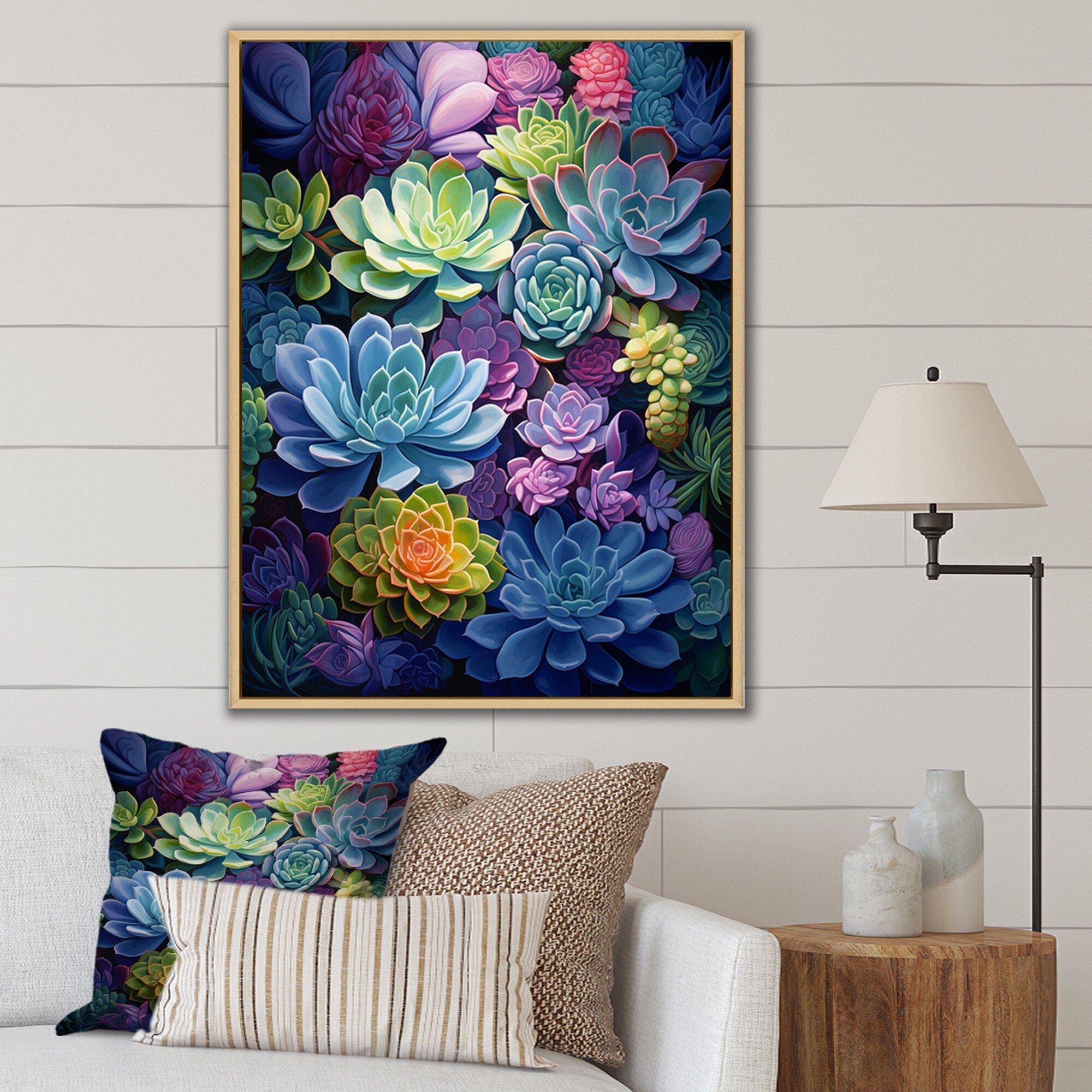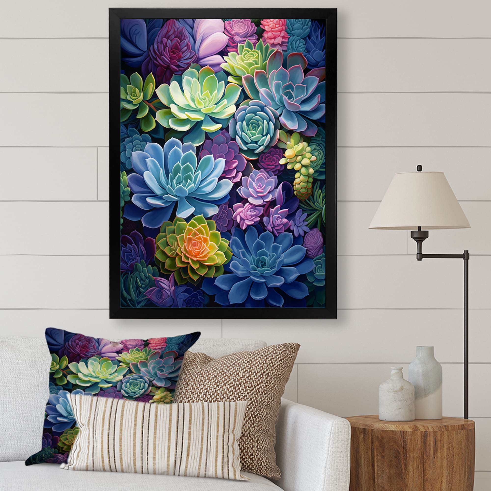 Designart "Blue Green Succulents Botanical Oasis" Succulent Framed Canvas Wall Art