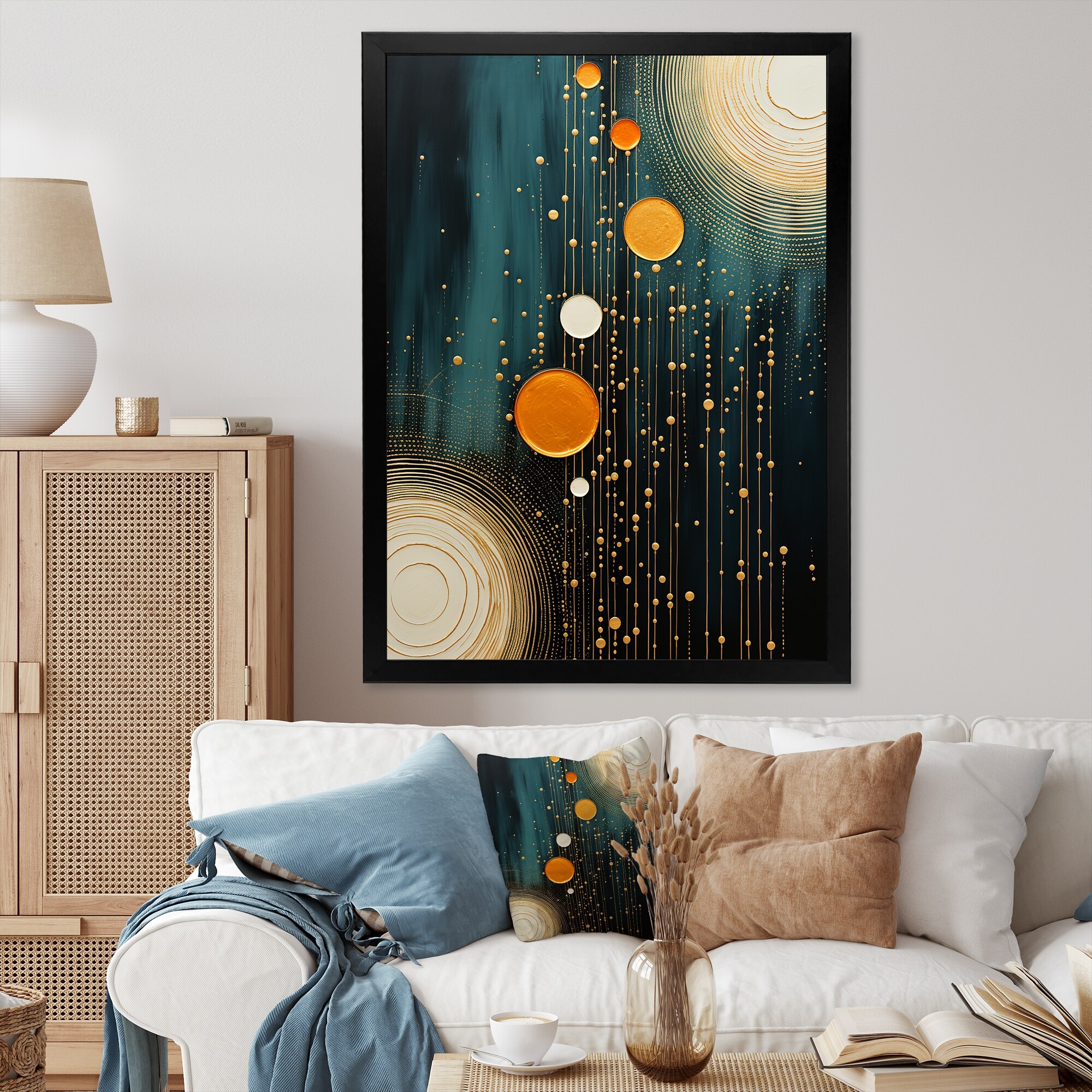Designart "Teal Yellow Mid Century Minimalist Oasis I" Abstract Collages Framed Canvas Prints
