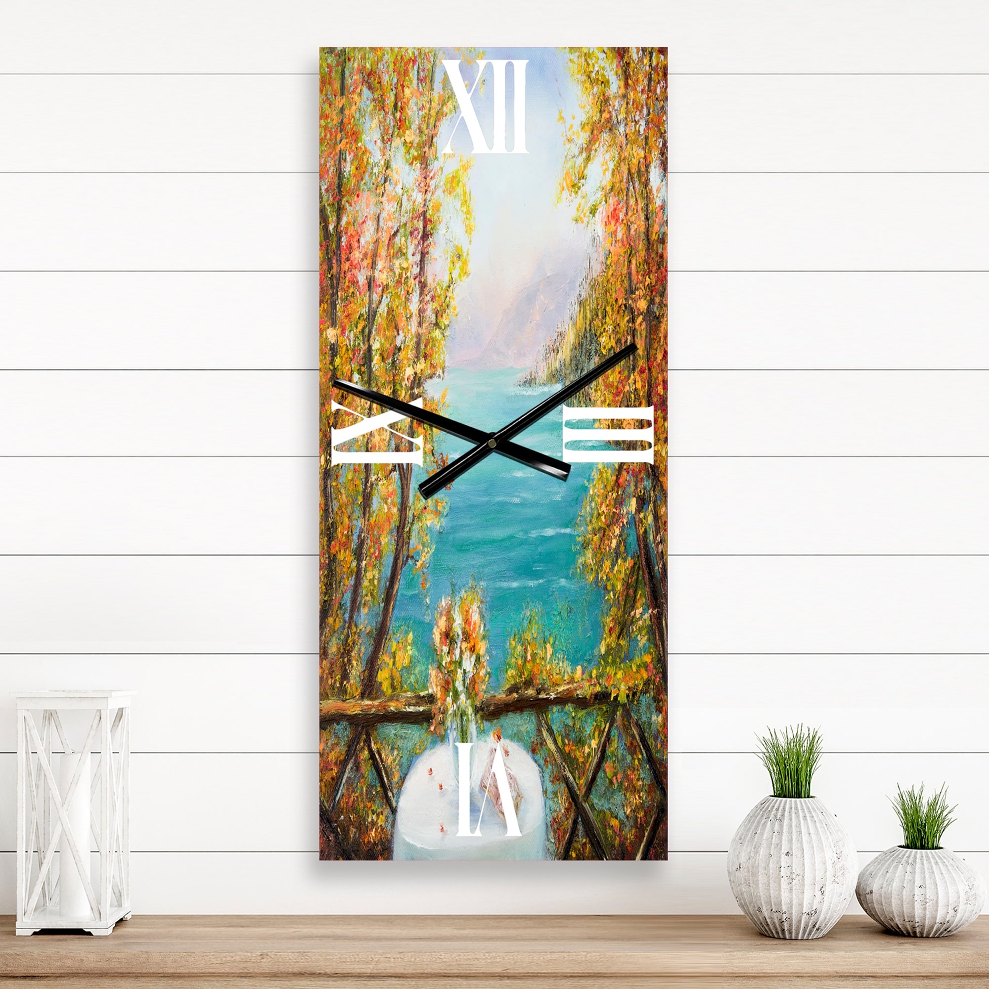 Designart 'Terrace VIew By the Blue Ocean' Nautical & Coastal Wall Clock Decor