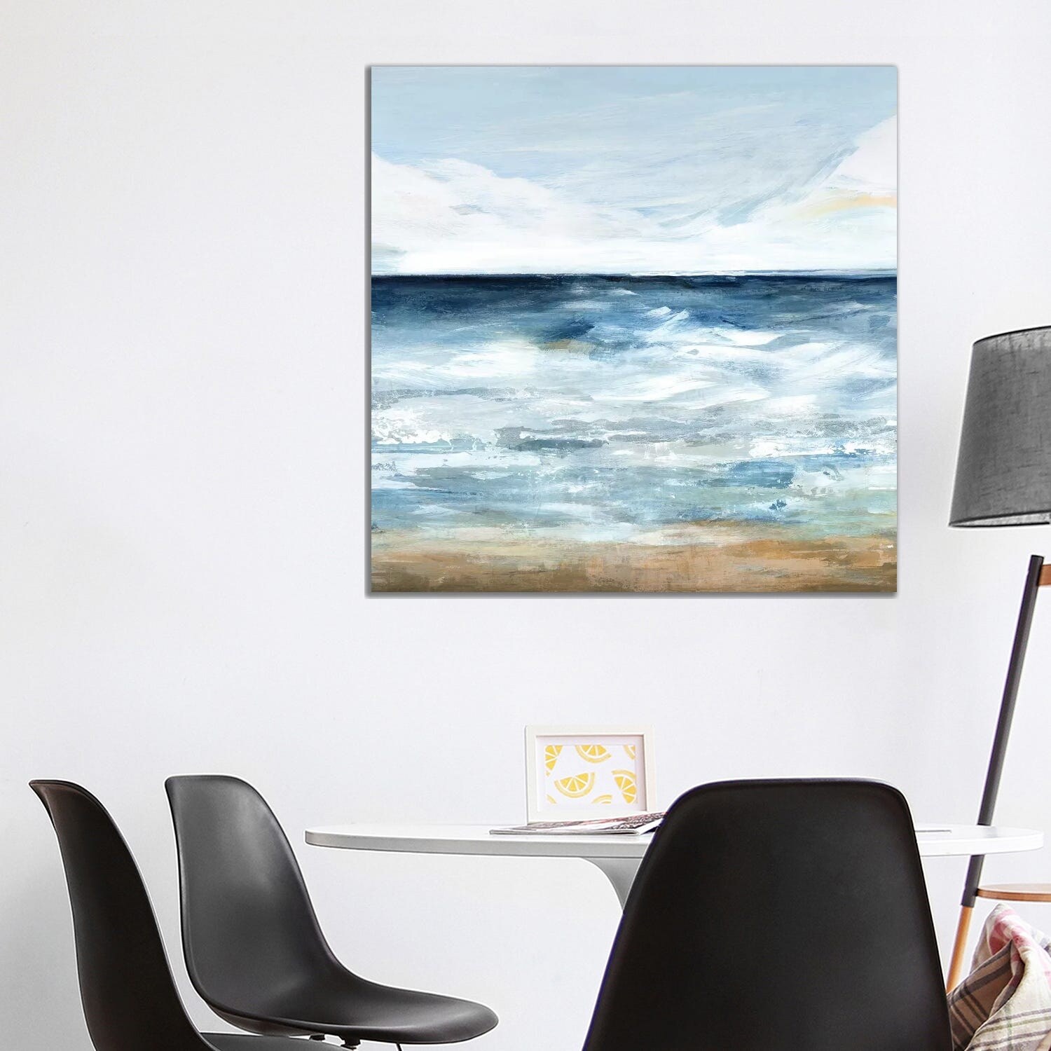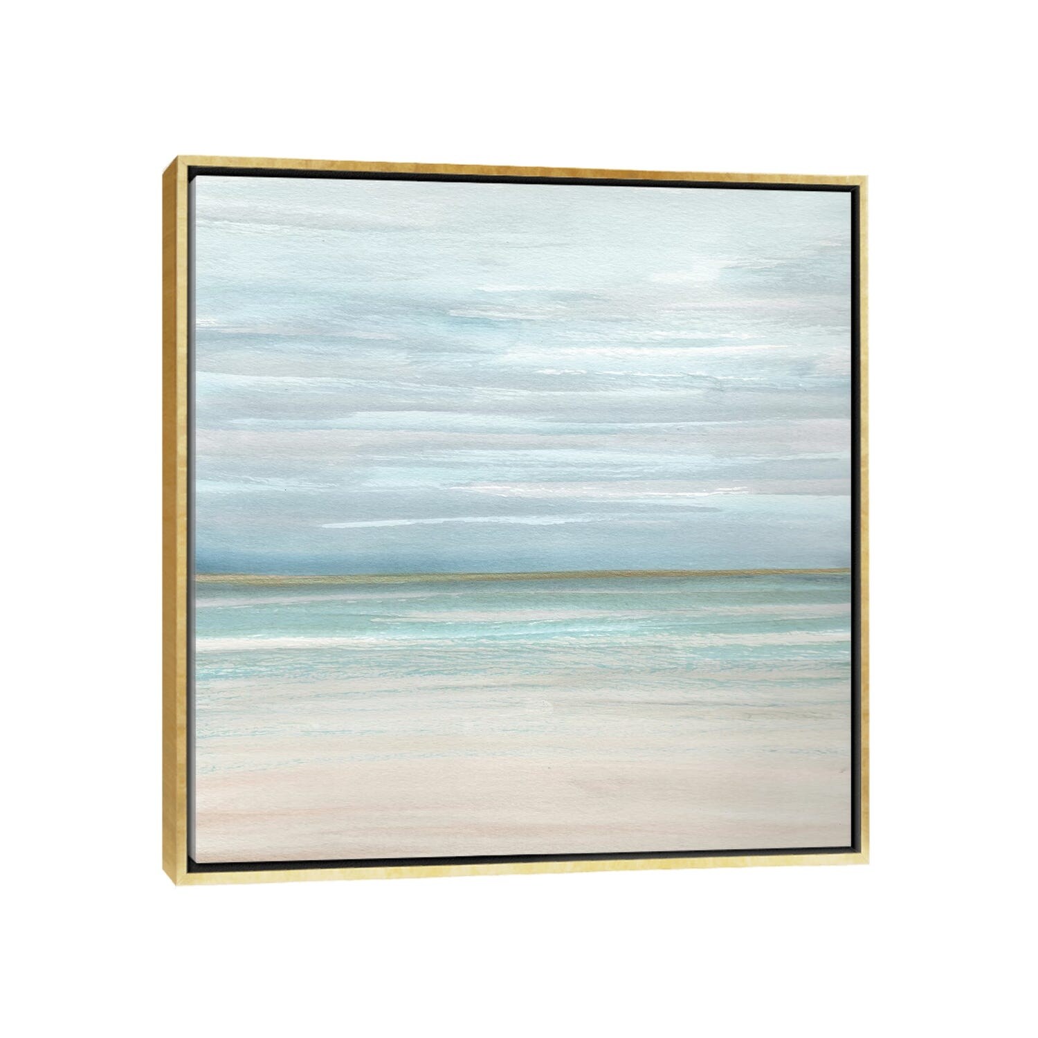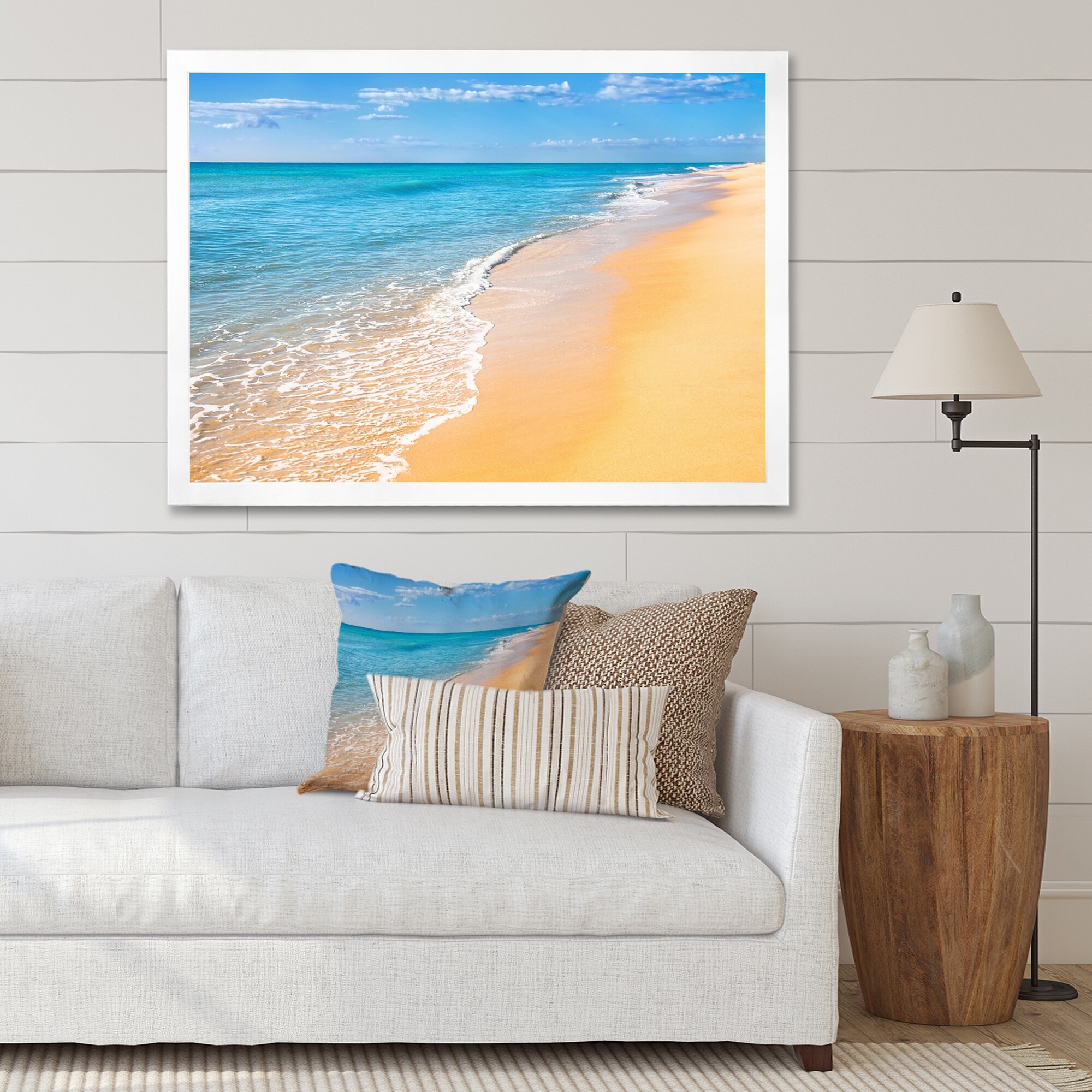 White Sand Beach, Calm Ocean Shore Coastal Blue Canvas Wall Art Print for Living Room