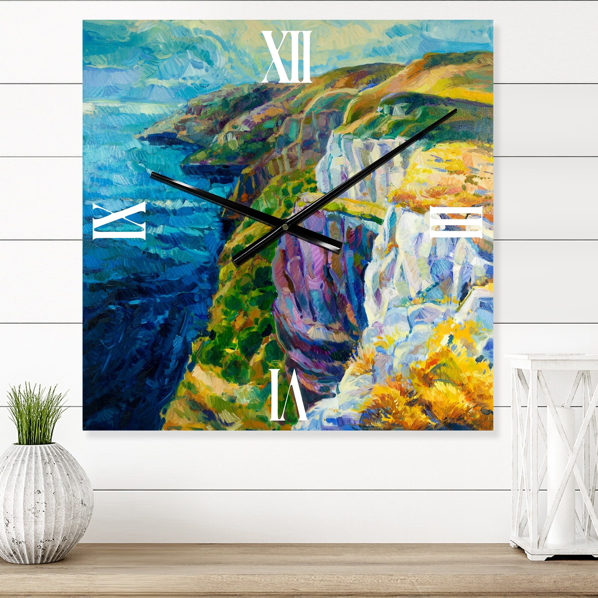 Designart 'Cliffs By the Blue Ocean II' Nautical & Coastal Wall Clock Decor