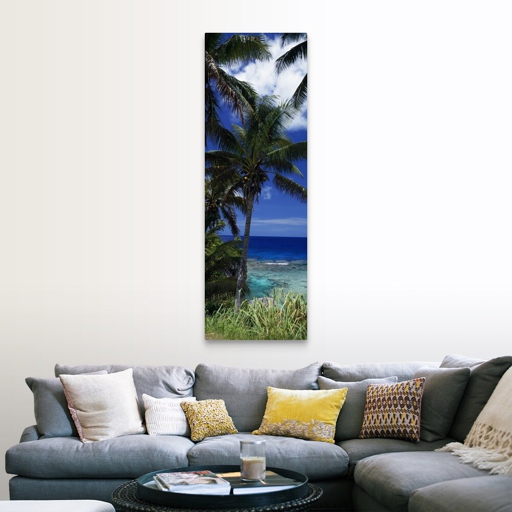 "Palm trees on island coast, blue ocean water, Nive Island, South Pacific" Canvas Wall Art