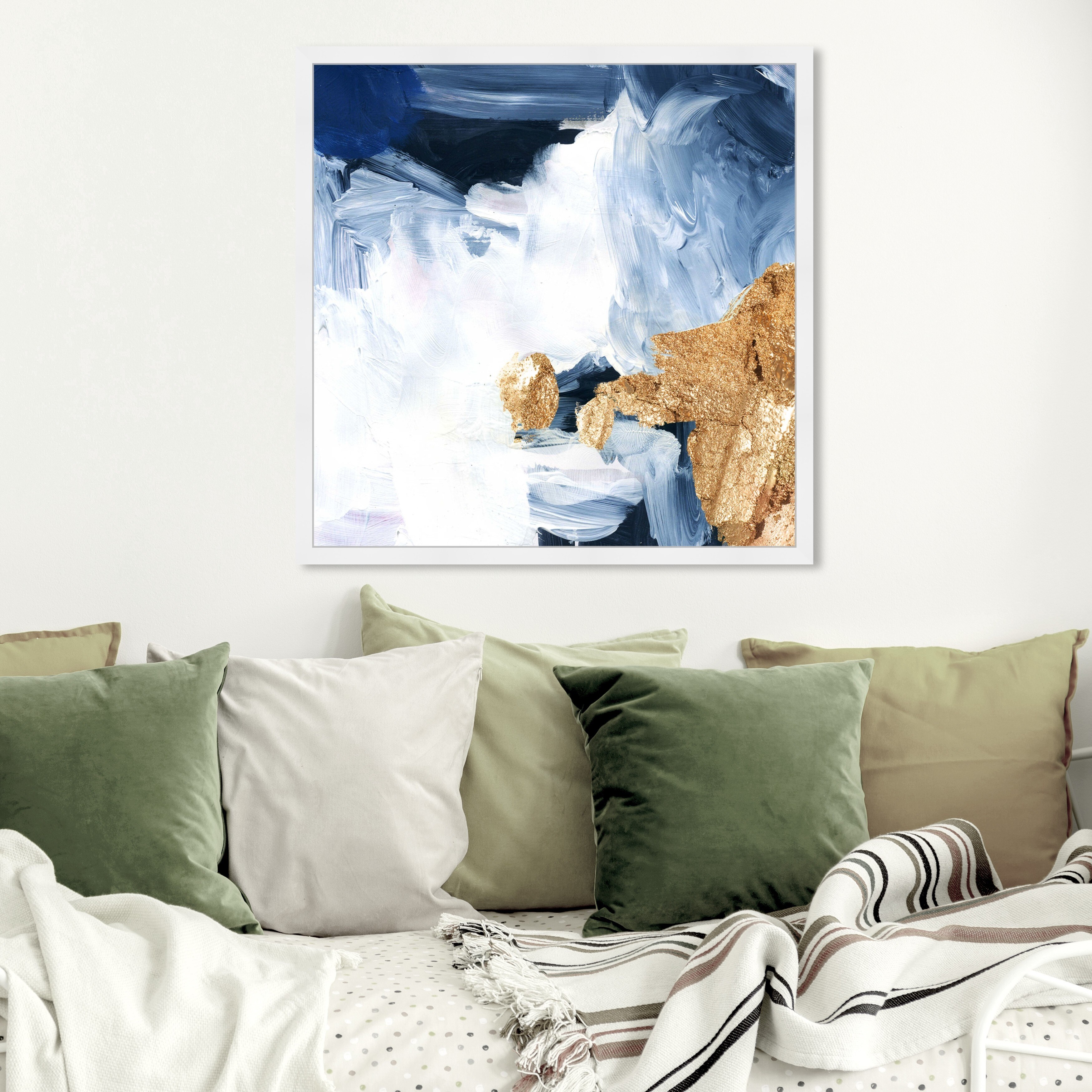 Oliver Gal 'Pacific Ocean' Abstract Wall Art Framed Print Paint - Blue, Gold