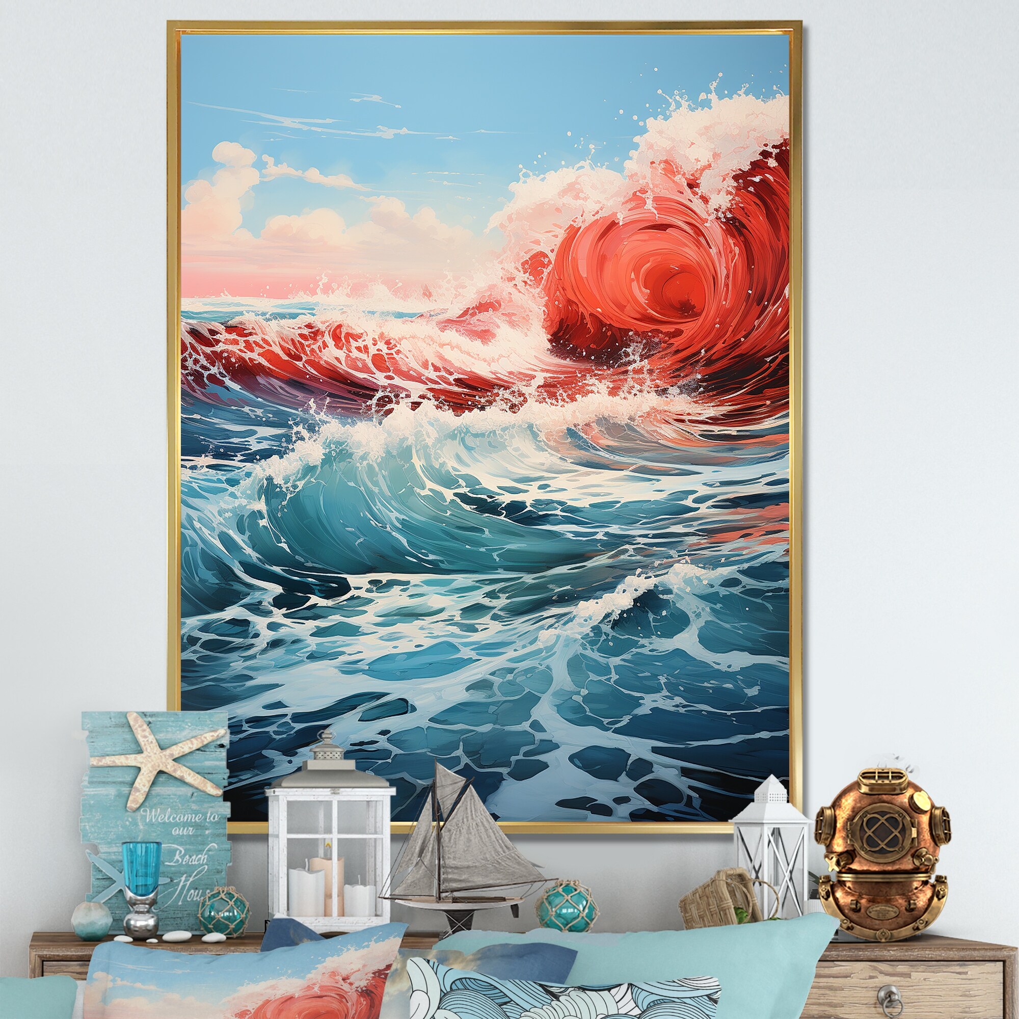 Designart "Wild Blue Ocean Waves" Nautical & Coastal Framed Canvas artwork