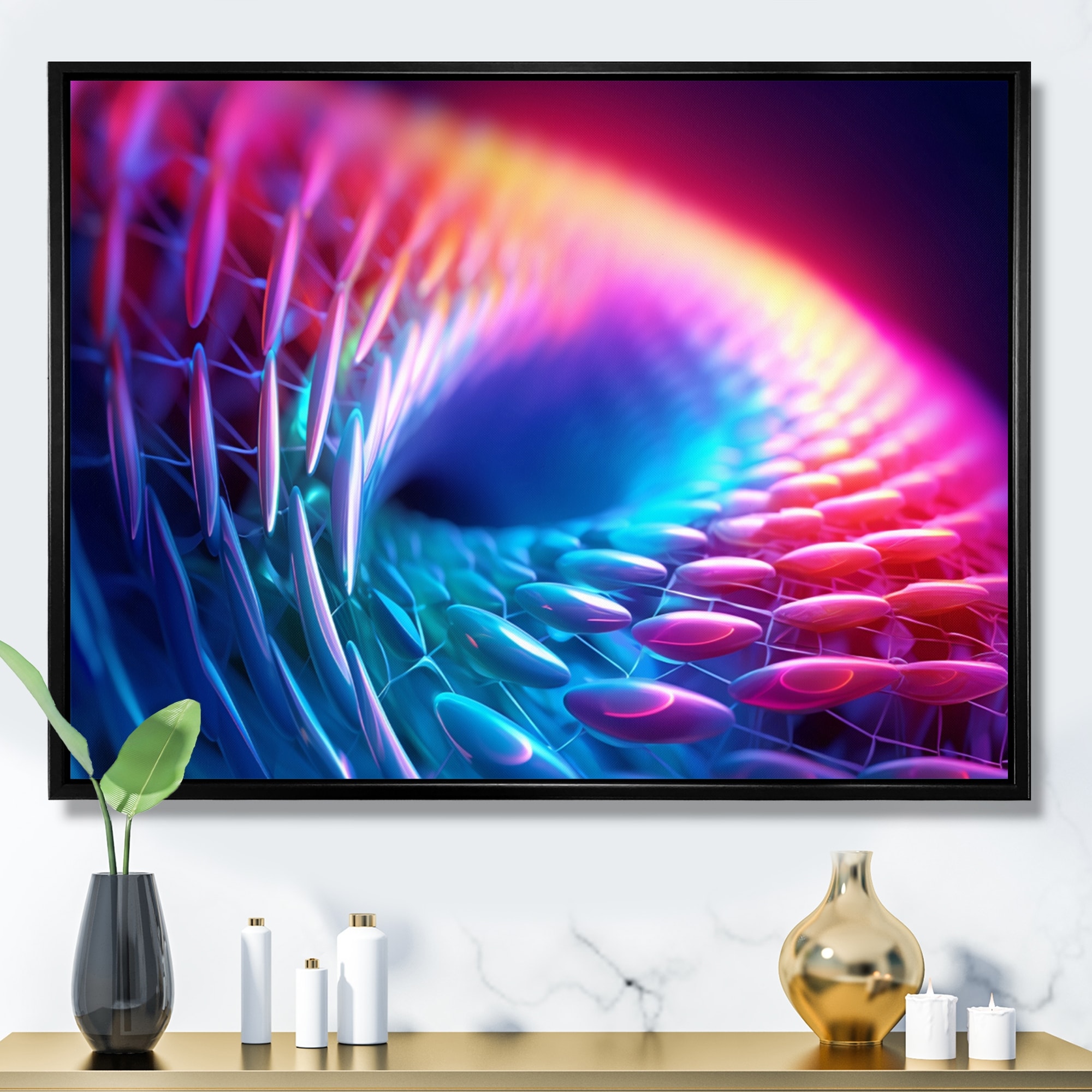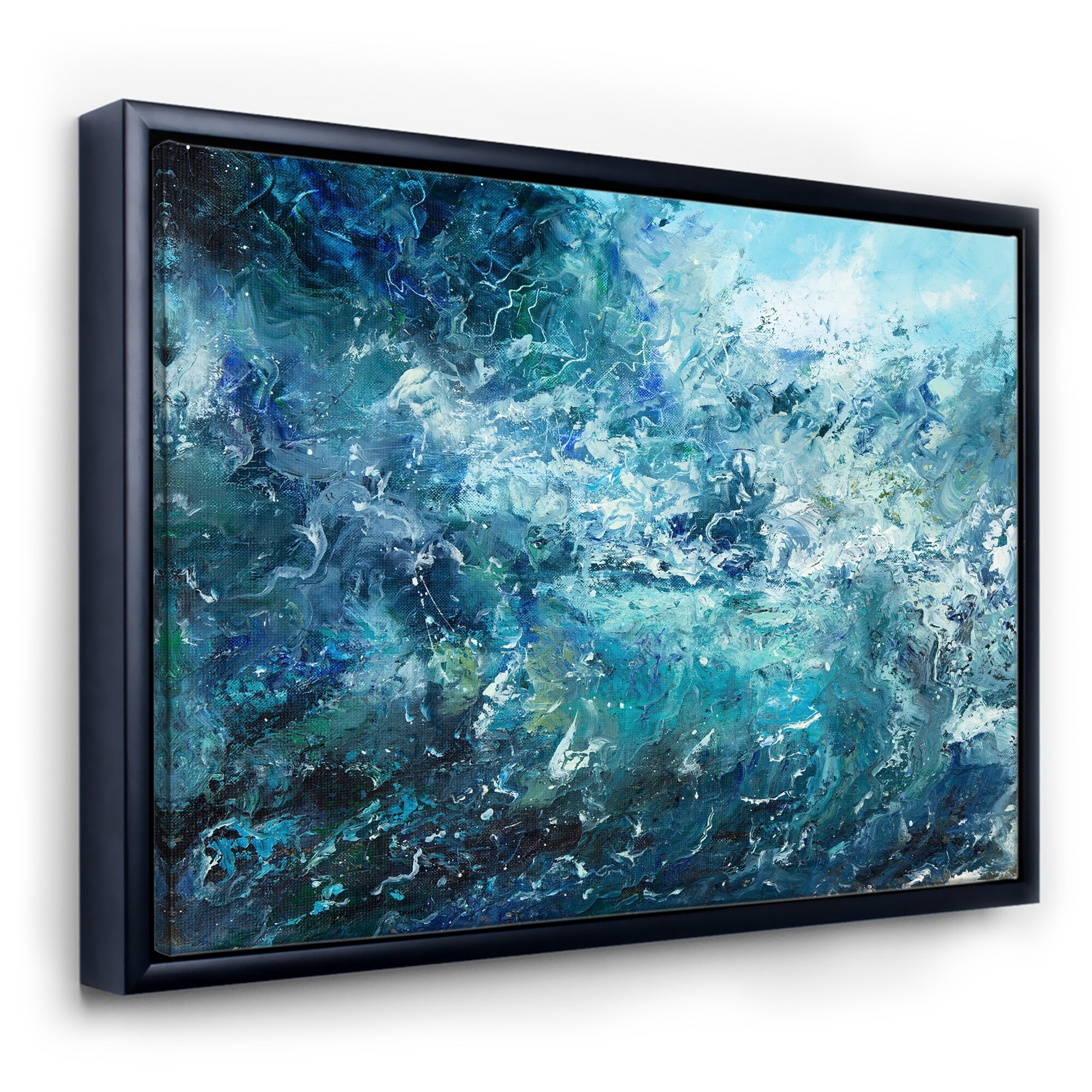 "When the ocean turns into blue fire" Black Float Frame Canvas Art