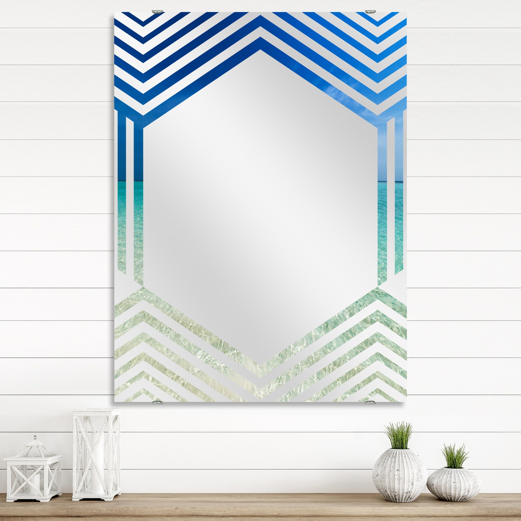 Designart 'Turquoise Ocean Under Blue Sky' Sea & Shore Printed Wall Mirror