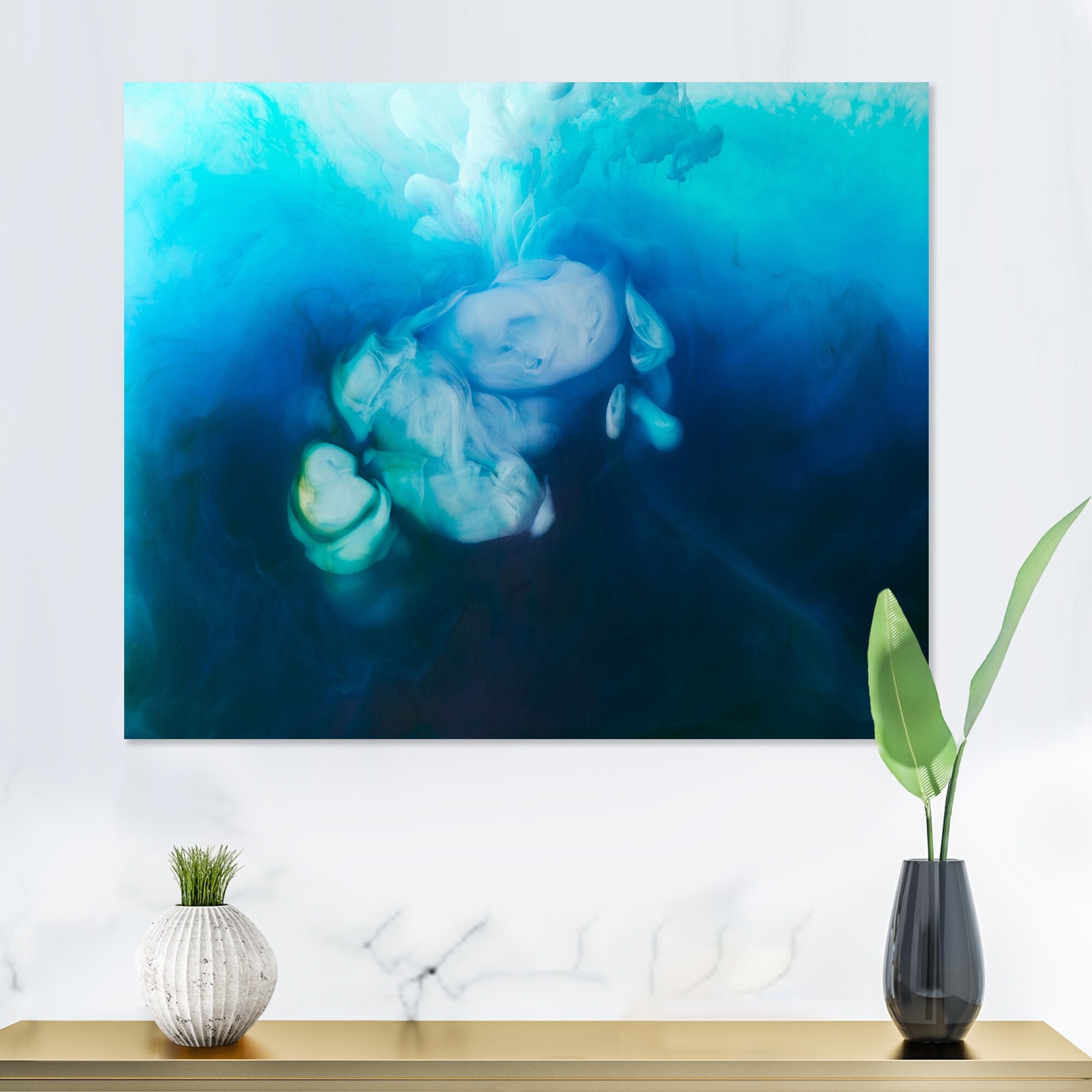 Designart "Light Blue Drip in Ocean of Blue And Turquoise" Modern Canvas Wall Art Print