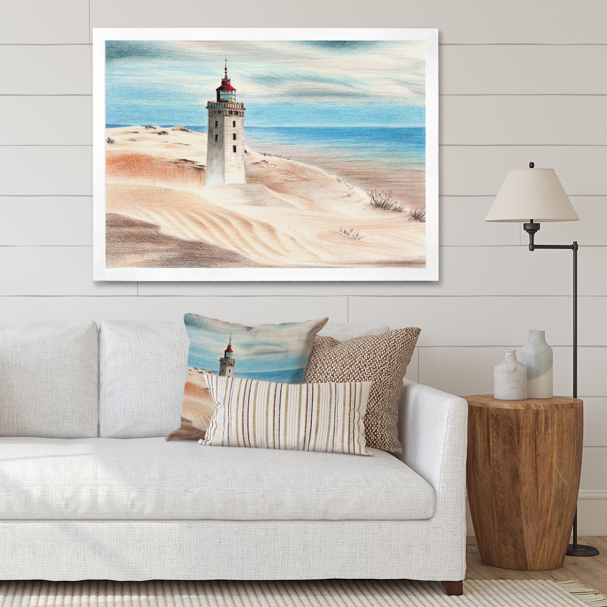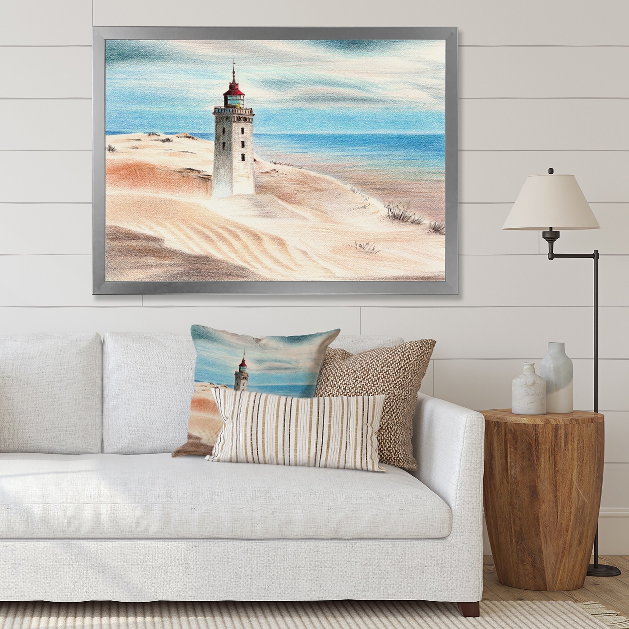 Designart "Lighthouse By the Blue Ocean" Nautical & Coastal Framed Art Print