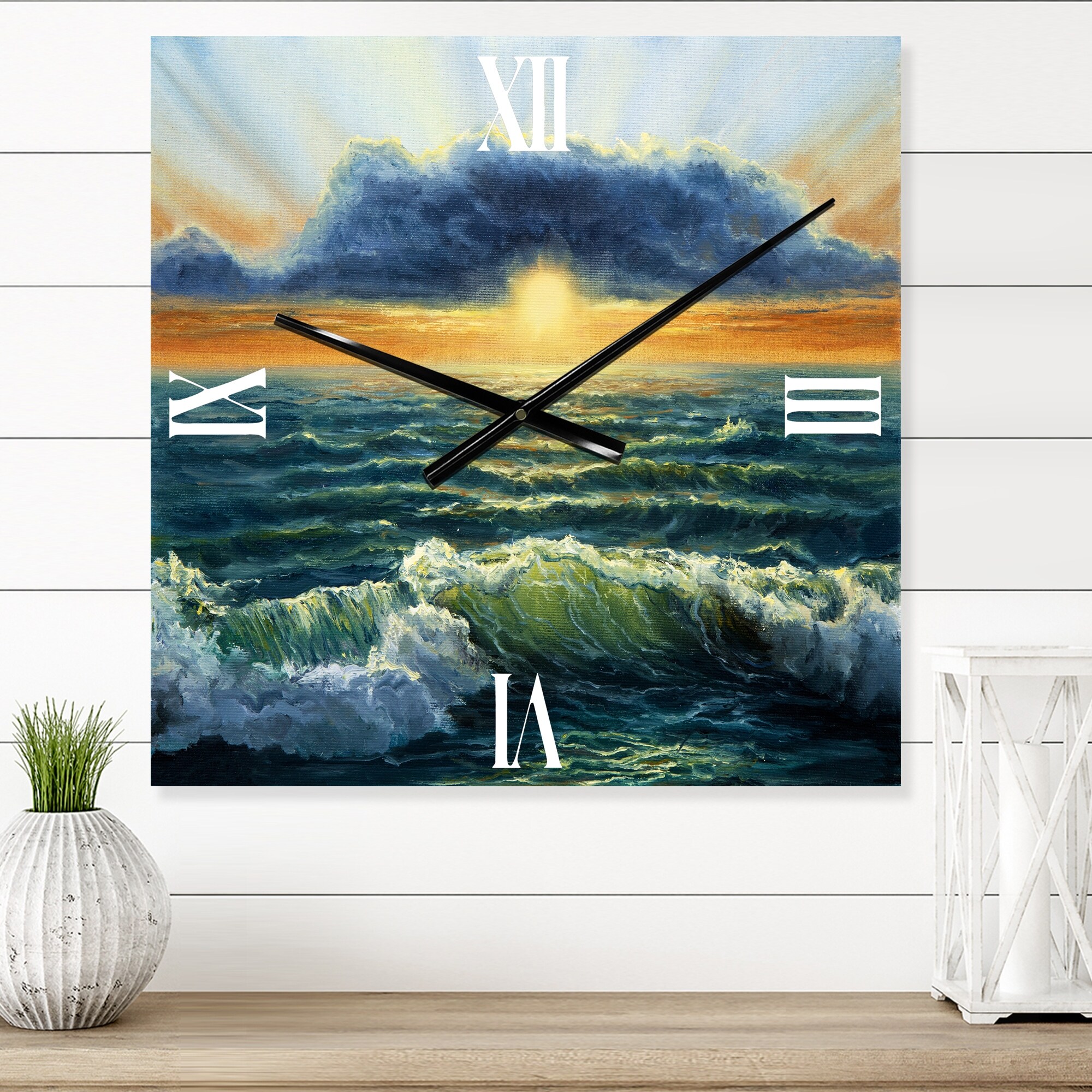 Designart 'Sunset Over the Blue Ocean I' Nautical & Coastal Large Wall Clock