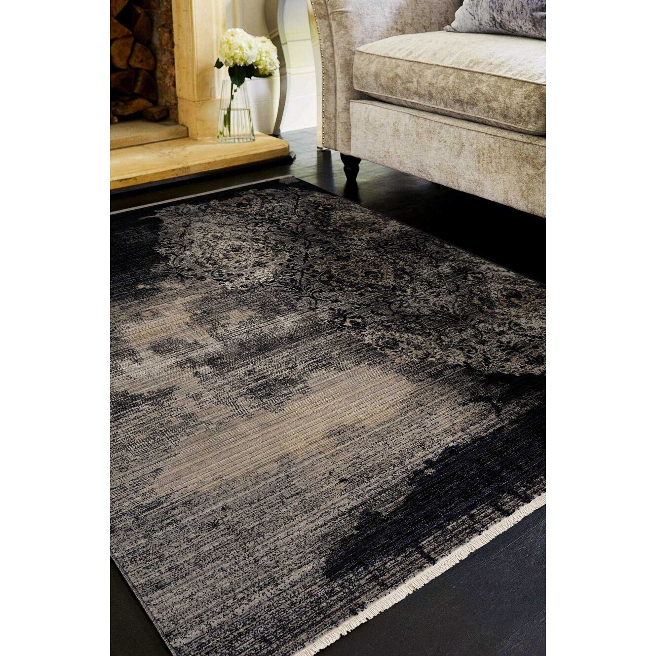 HomeRoots 4' X 6' Beige And Gray Floral Power Loom Distressed Stain Resistant Area Rug - 5' Octagon
