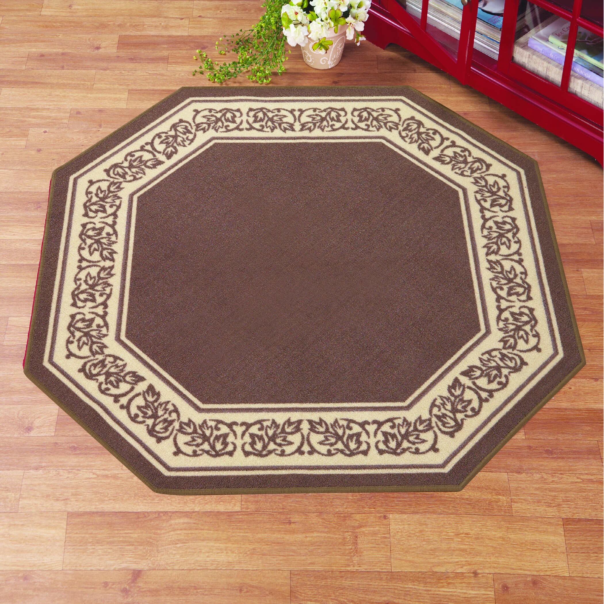 Floral Border Octagon Accent Rug - 54" x 54"