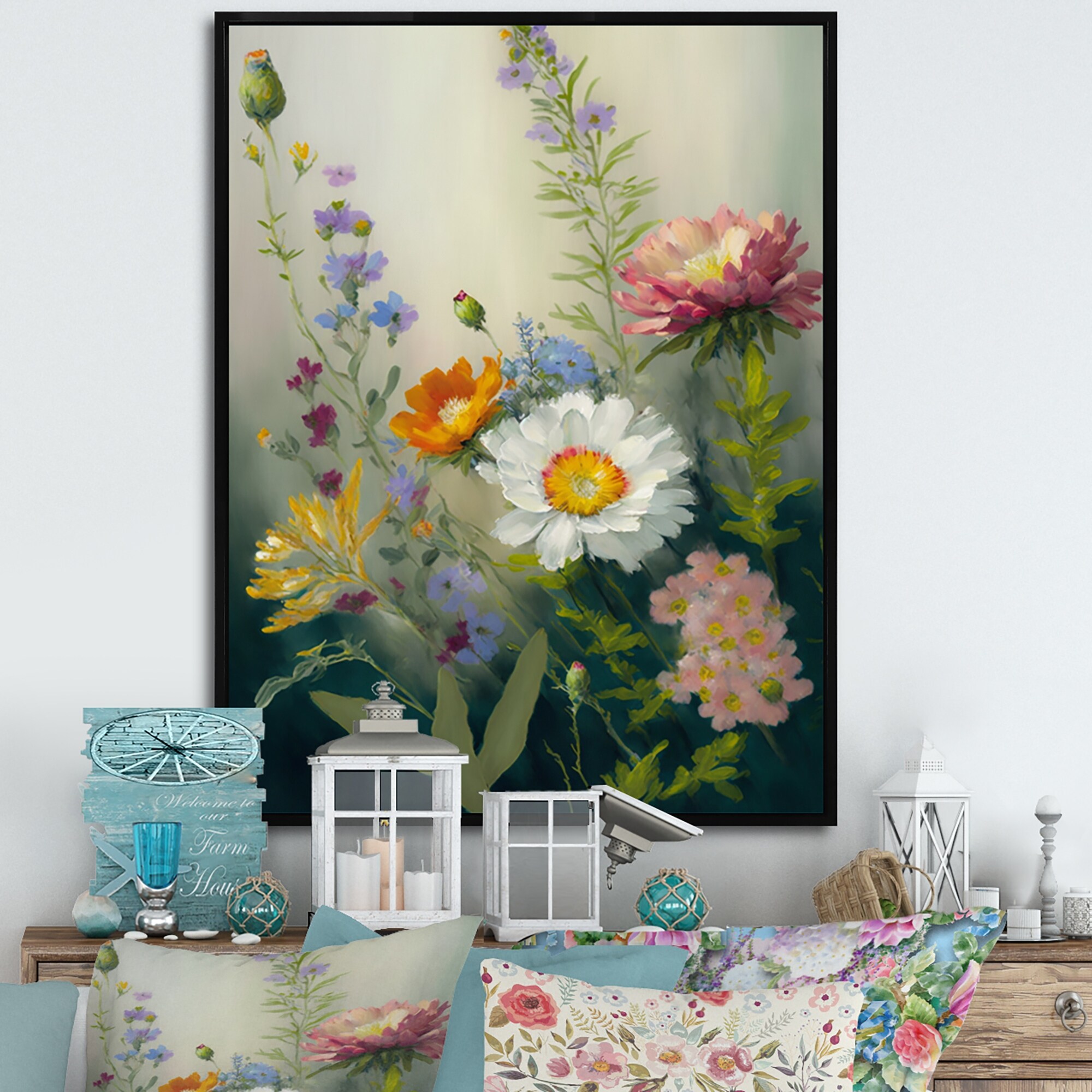 Designart "Painted Blossoming Wildflowers VI" Floral Bouquet Framed Canvas Wall Art Print