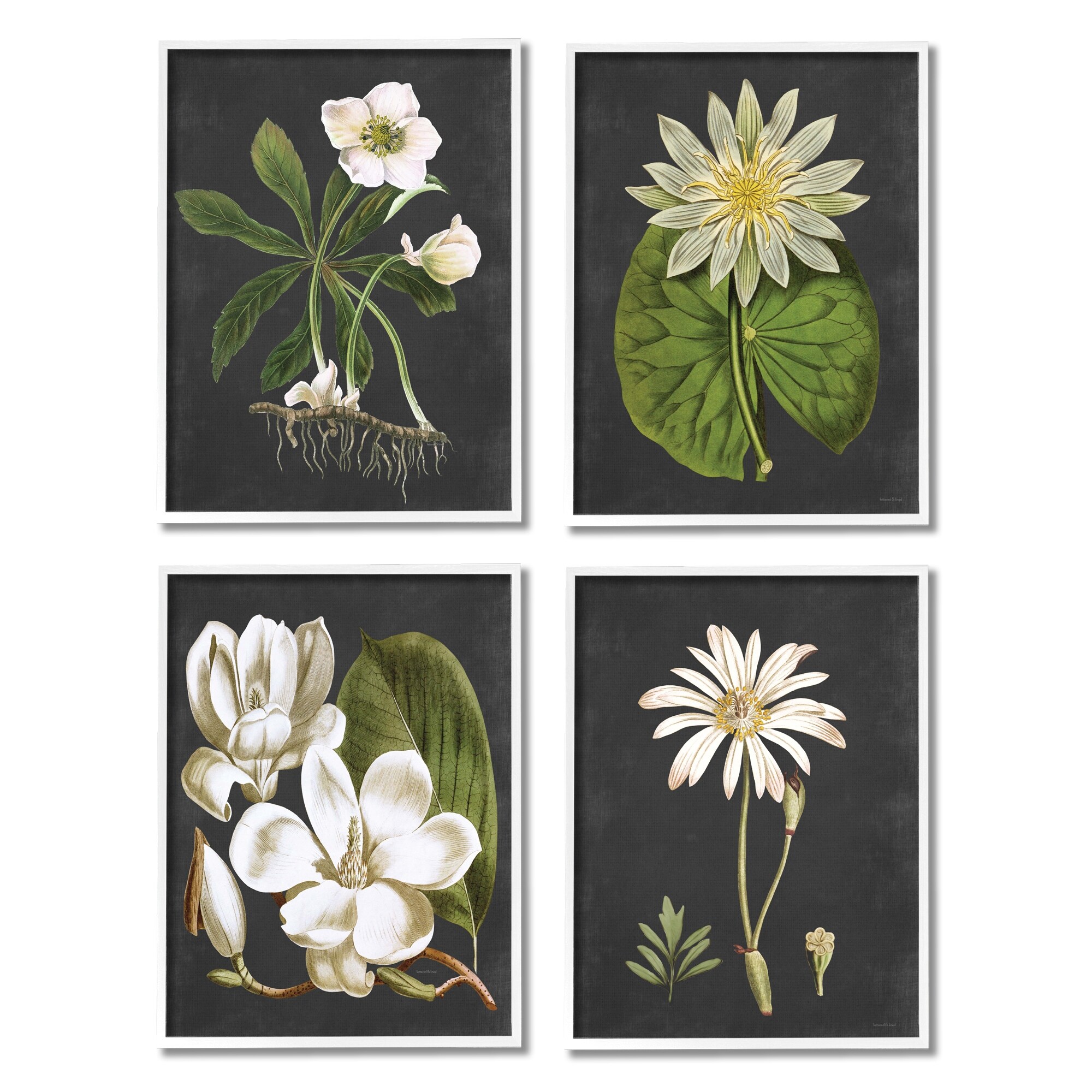 Stupell Vintage White Florals over Distressed Grey Lotus Daisies 4pc Multi Piece Framed Wall Art Set - Green