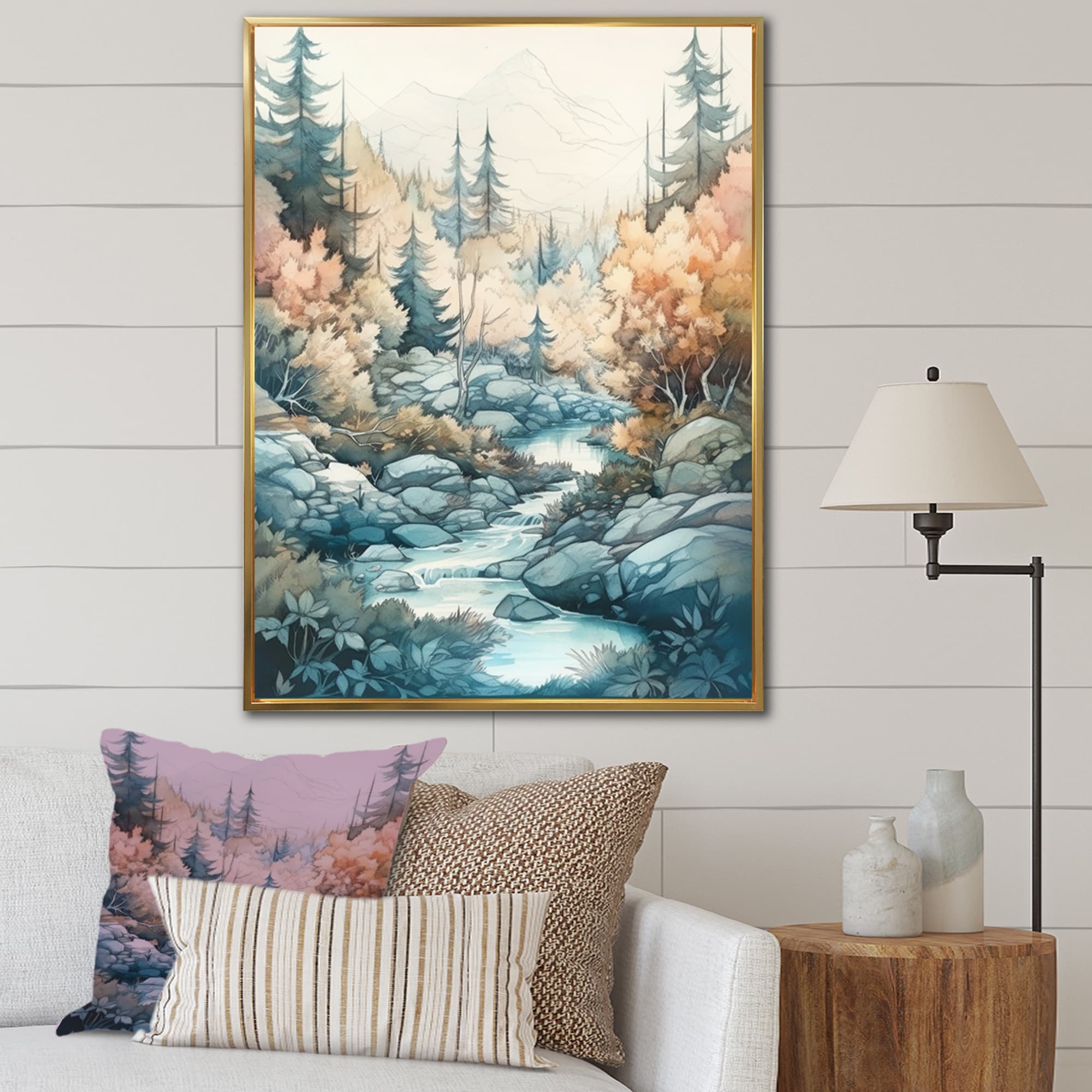 Designart "Colored Mountains And River Ii" Landscape Mountains River Framed Wall Decor