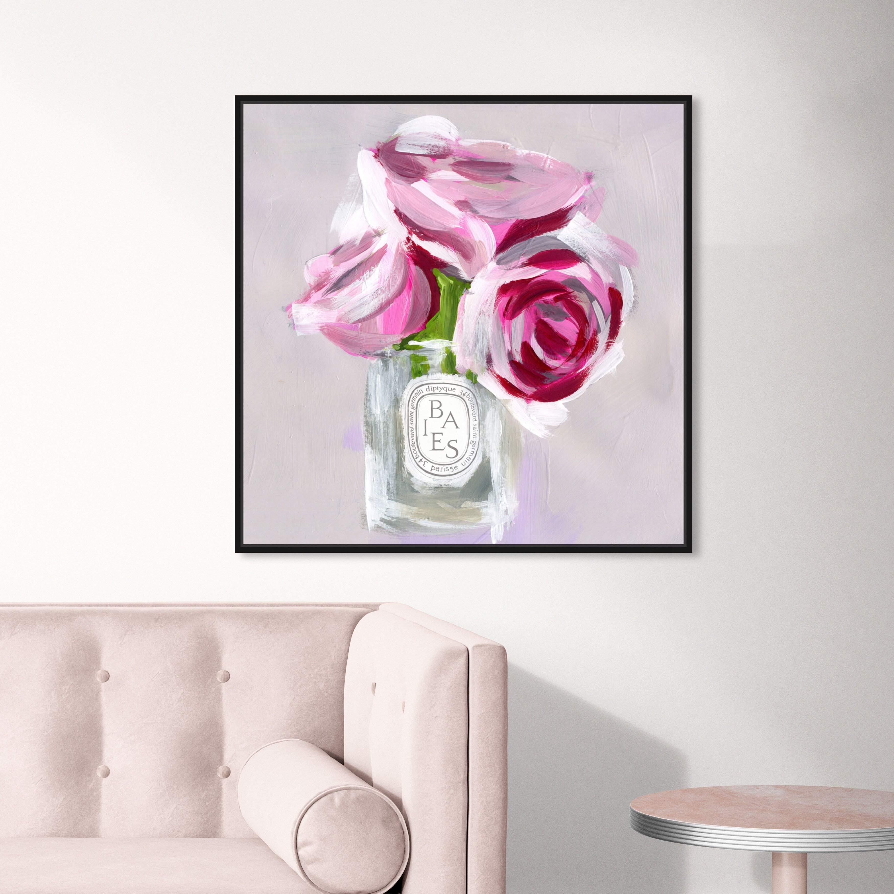 Oliver Gal 'Rose Candle' Floral and Botanical Wall Art Framed Canvas Print Florals - Pink, White