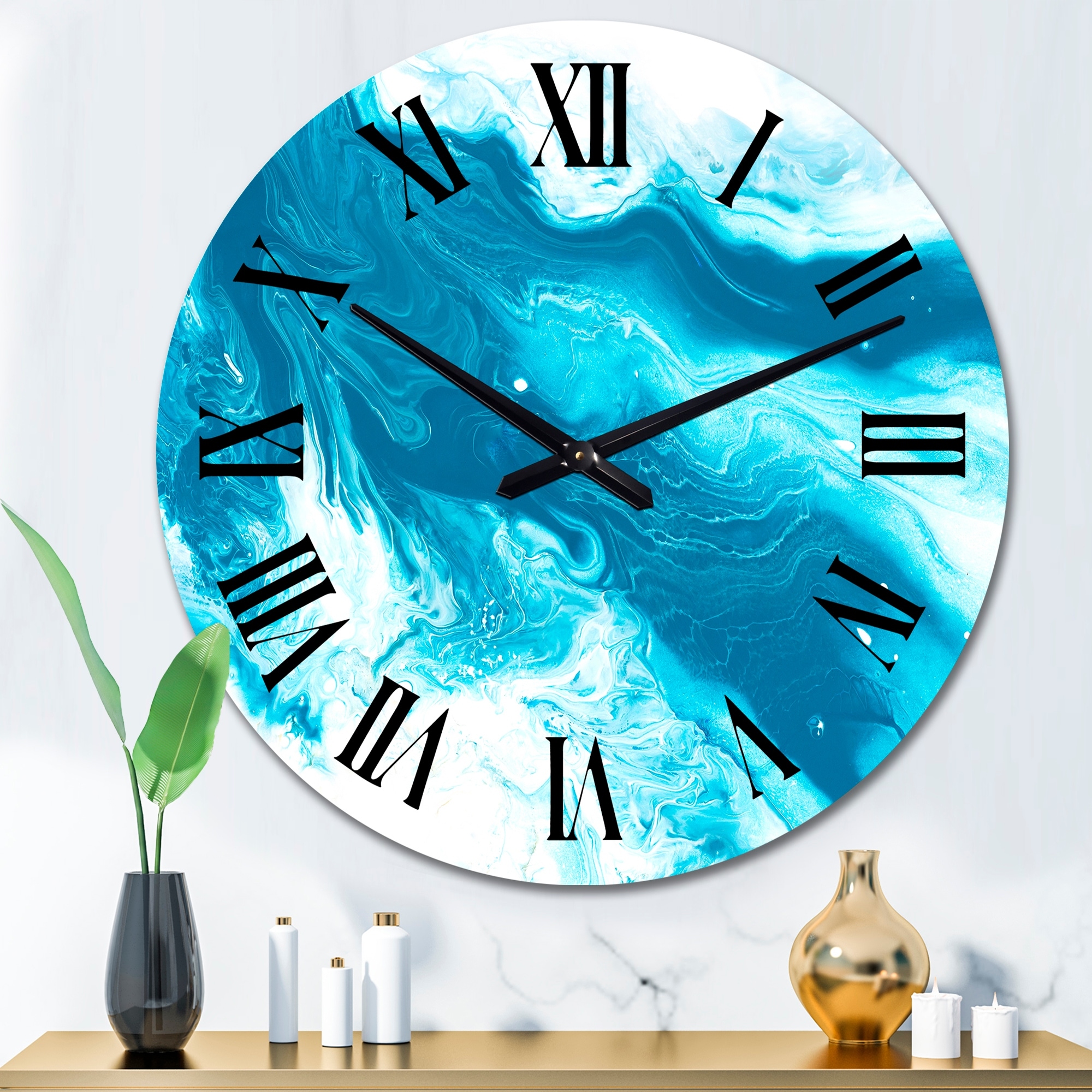 Designart 'Liquid Ink Art in Shades of Light Blue II' Modern wall clock