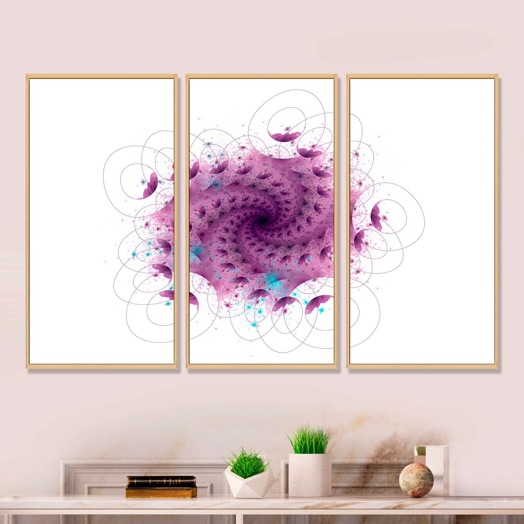Designart "Fuchia Abstract Spiral" Modern Framed Wall Art Set of 3 - 4 Colors of Frames