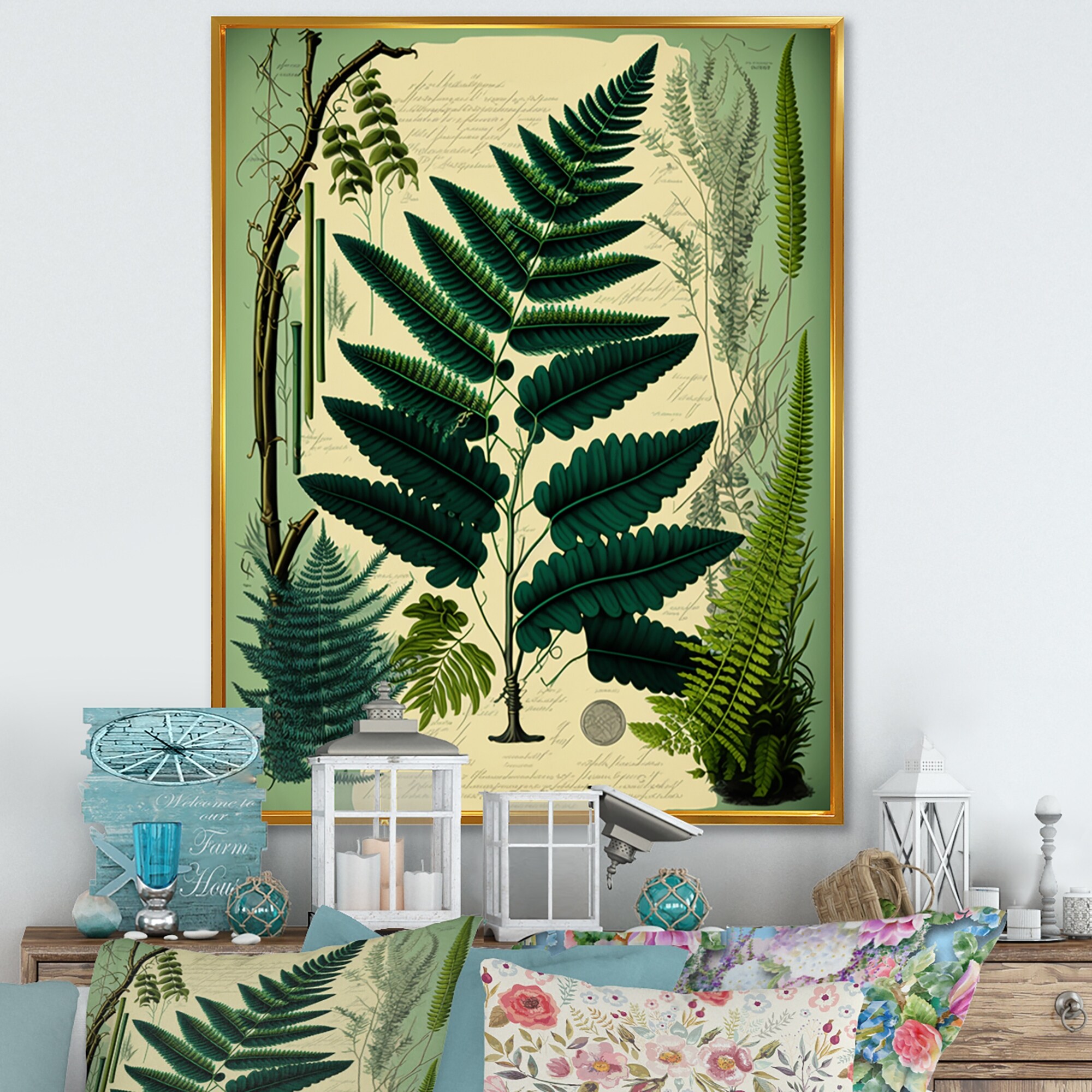 Designart "Fern On Retro Victorian Chart VI" Floral Ferns Framed Canvas Wall Art Print