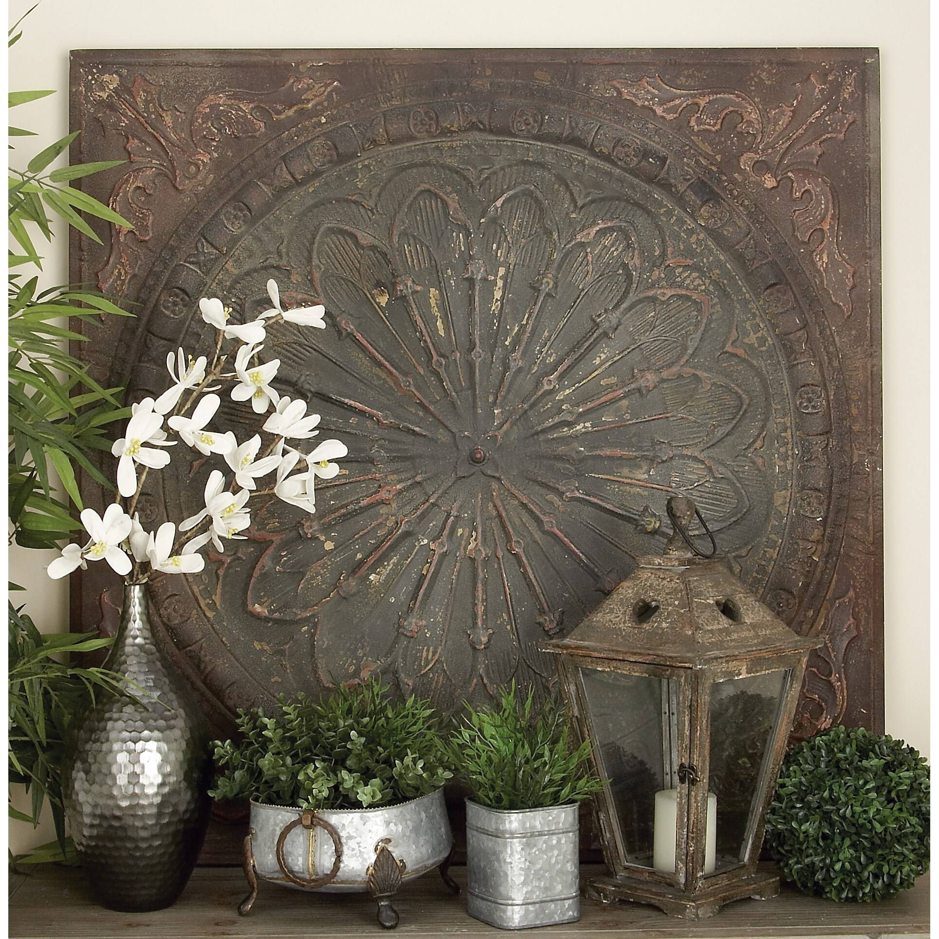 Brown Iron Rustic Wall Decor Floral and botanical 43 x 43 x 2