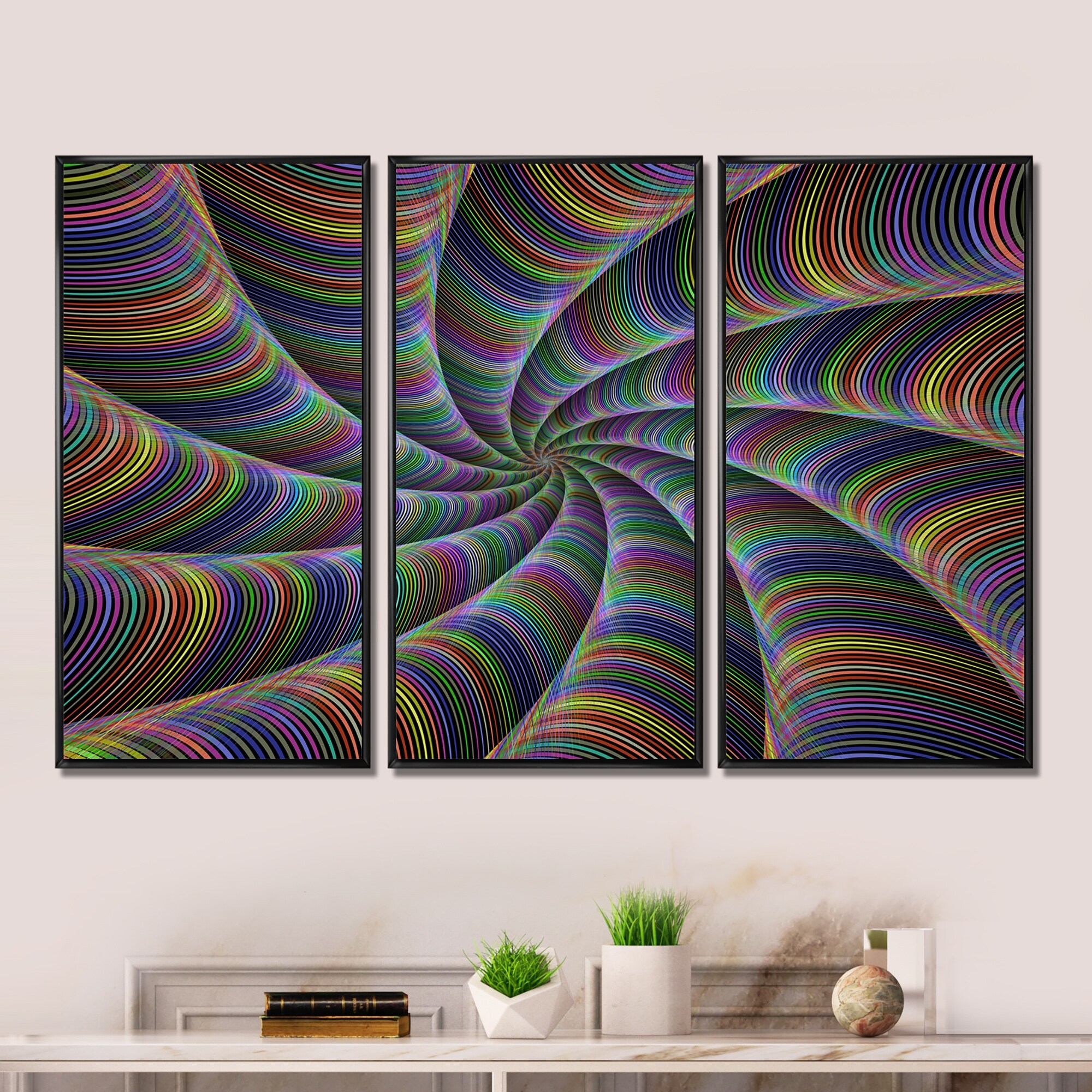 Designart "Spiral Bright Fractal Geometry X" Modern Framed Wall Art Set of 3 - 4 Colors of Frames