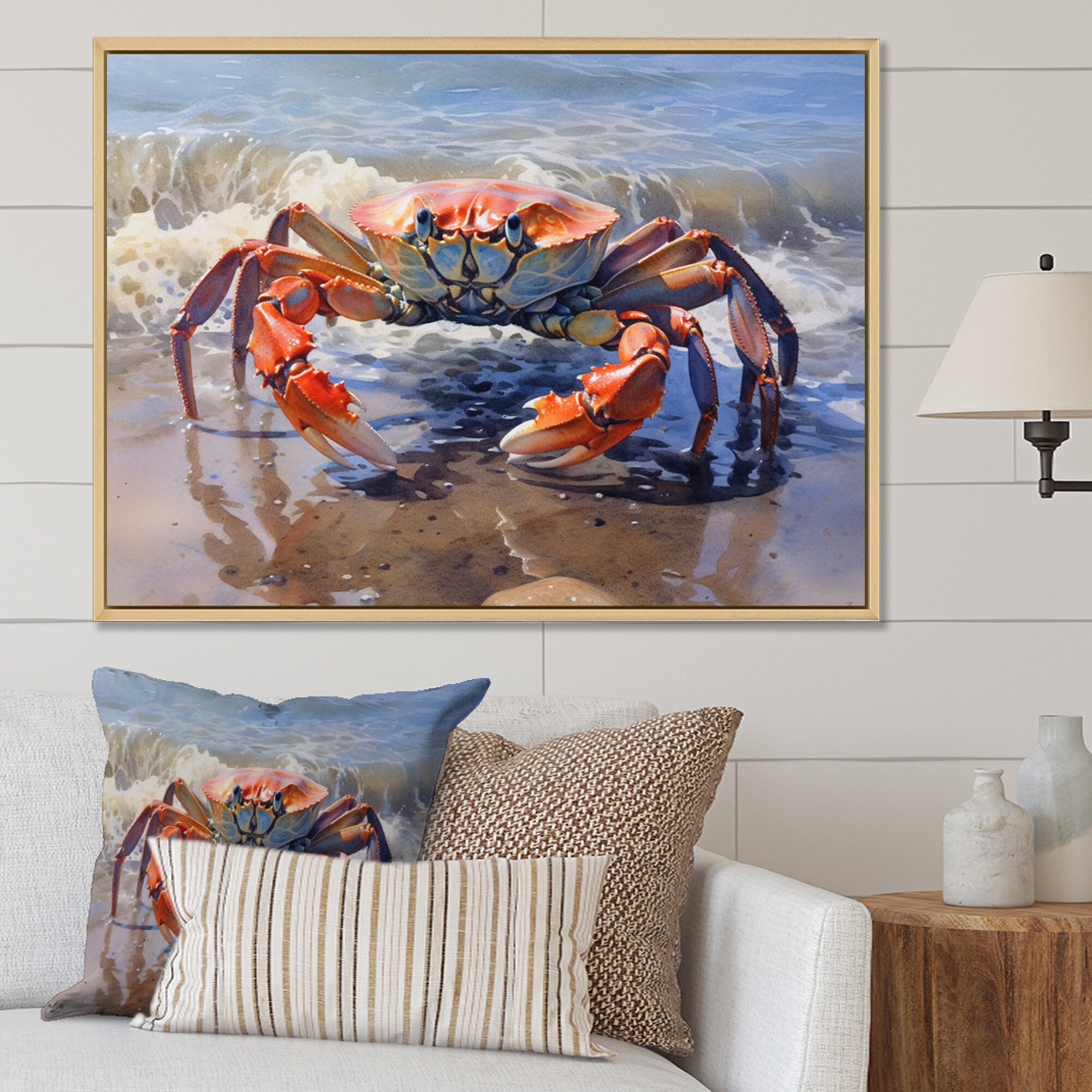 Designart "Crab Beachcombers II" Crab Framed Wall Art Living Room