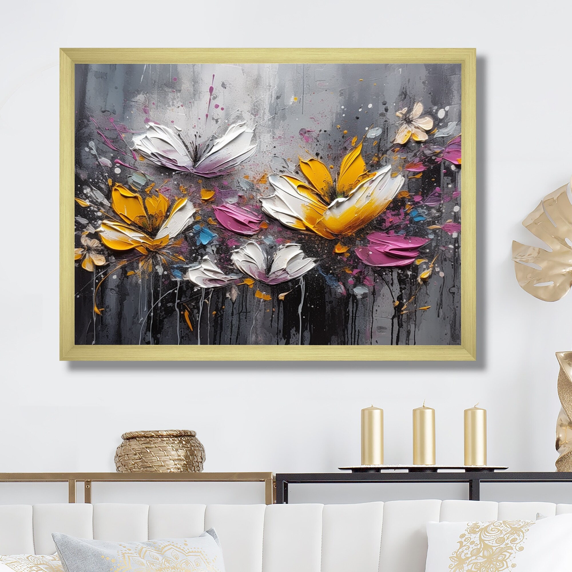 Designart "Flowers With White Butterflies I" Floral Framed Wall Art Prints