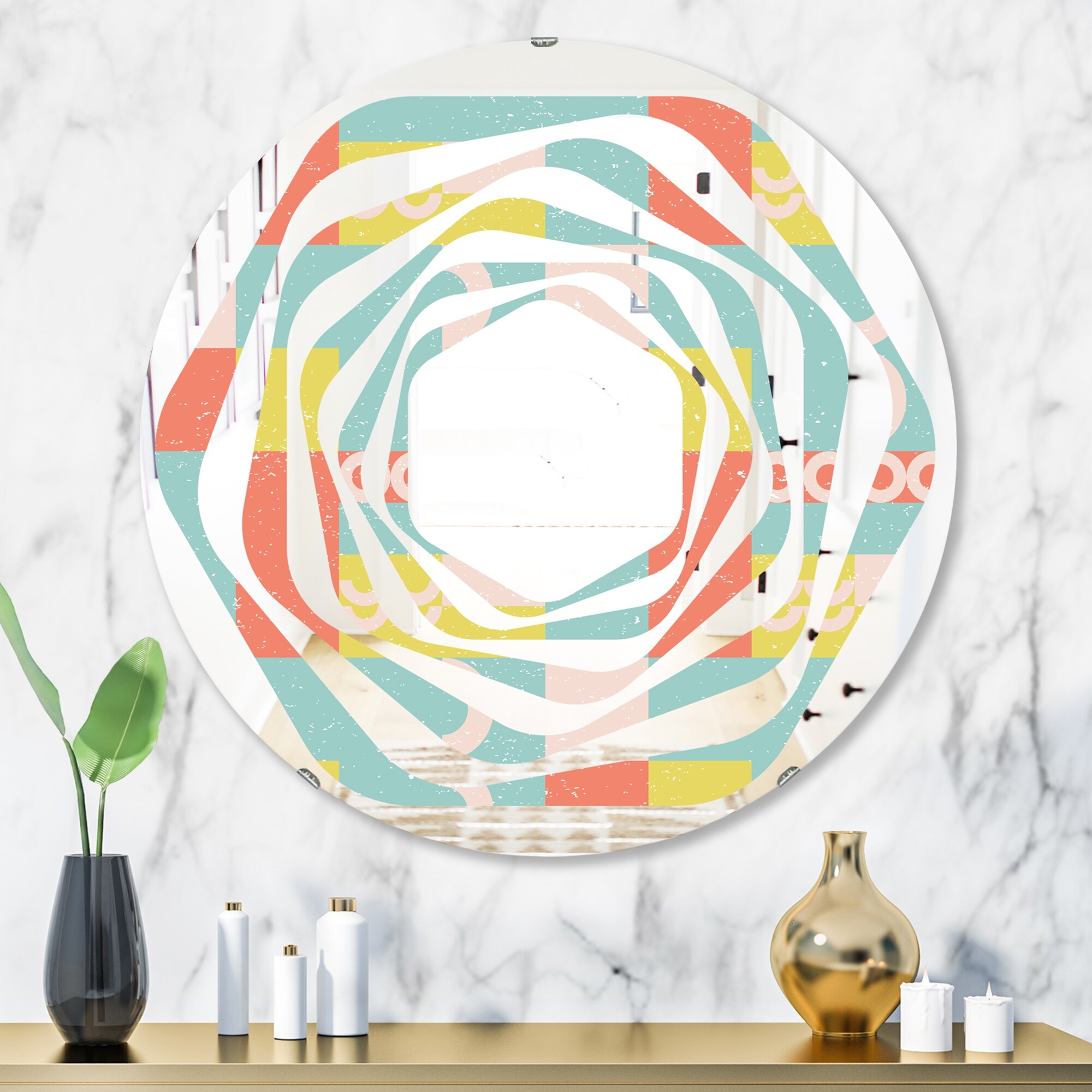 Designart 'Retro Abstract Design III' Printed Modern Round or Oval Wall Mirror - Whirl