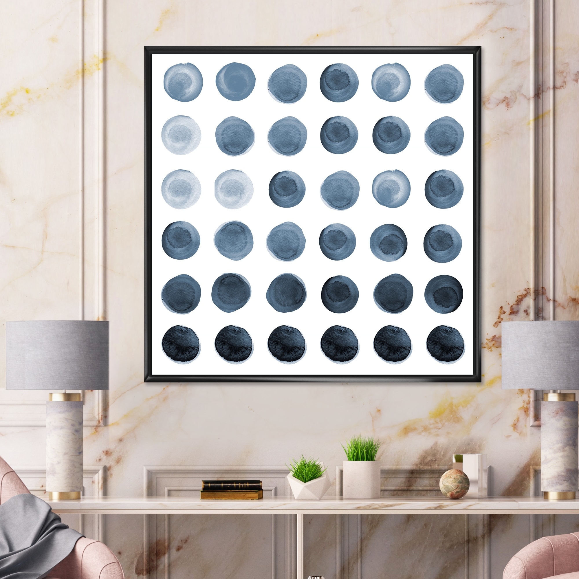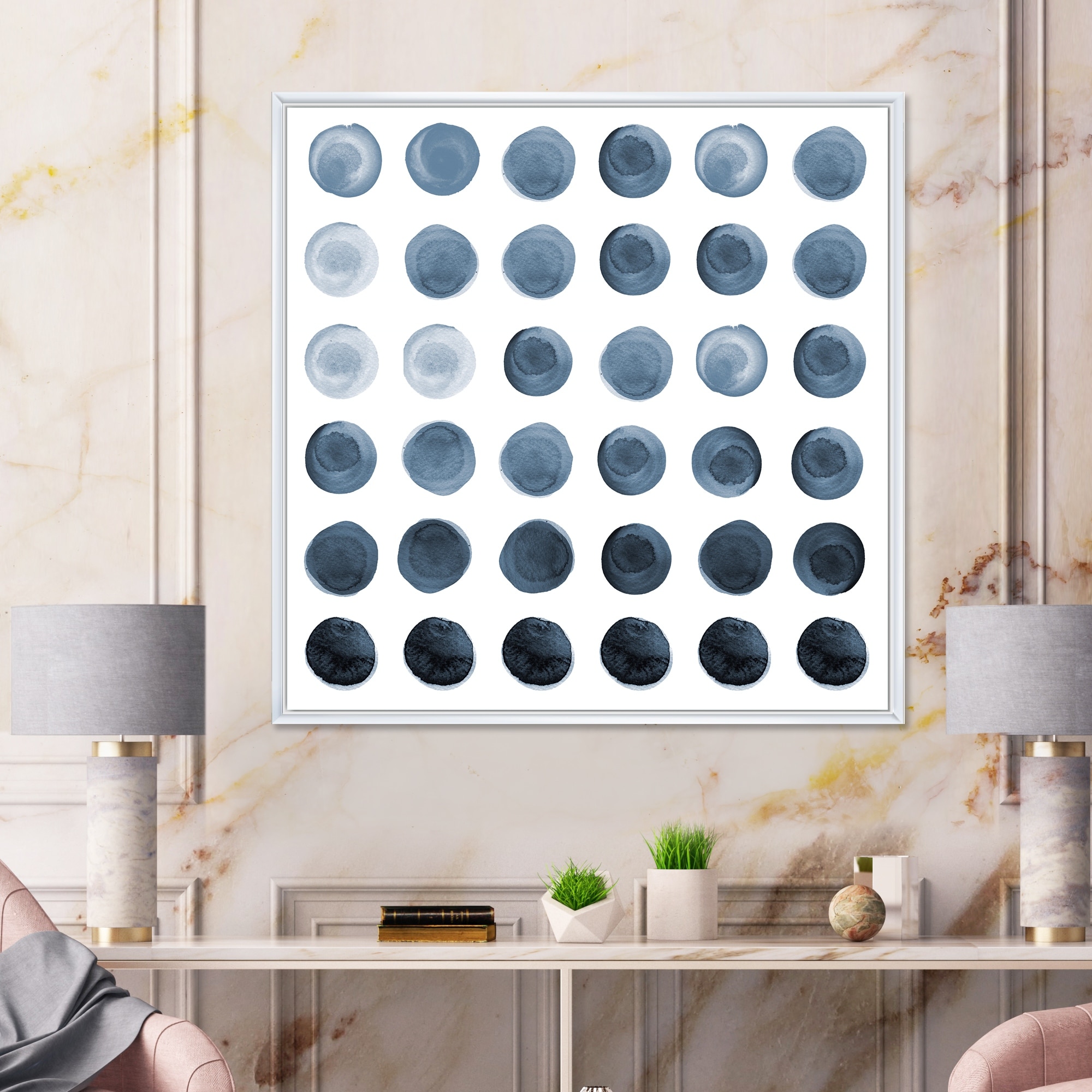 Designart "Circle Grid in Shades of Grey" Modern Framed Canvas Wall Art Print