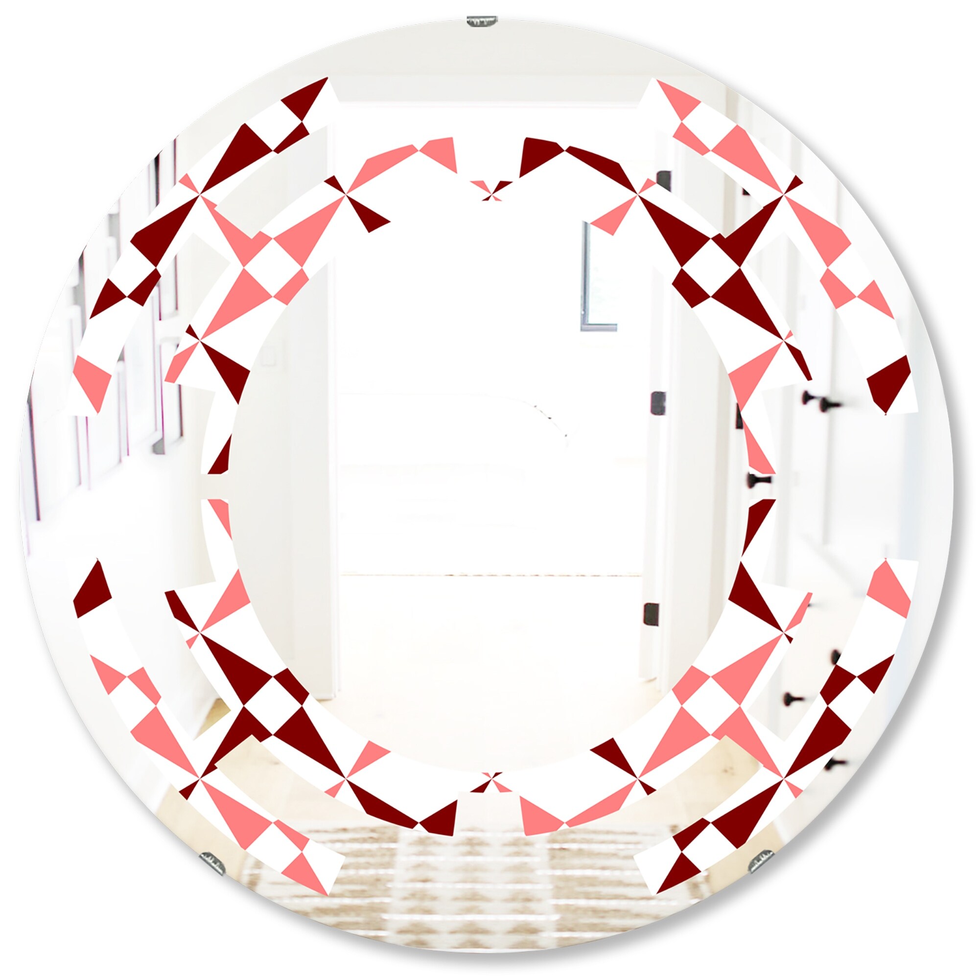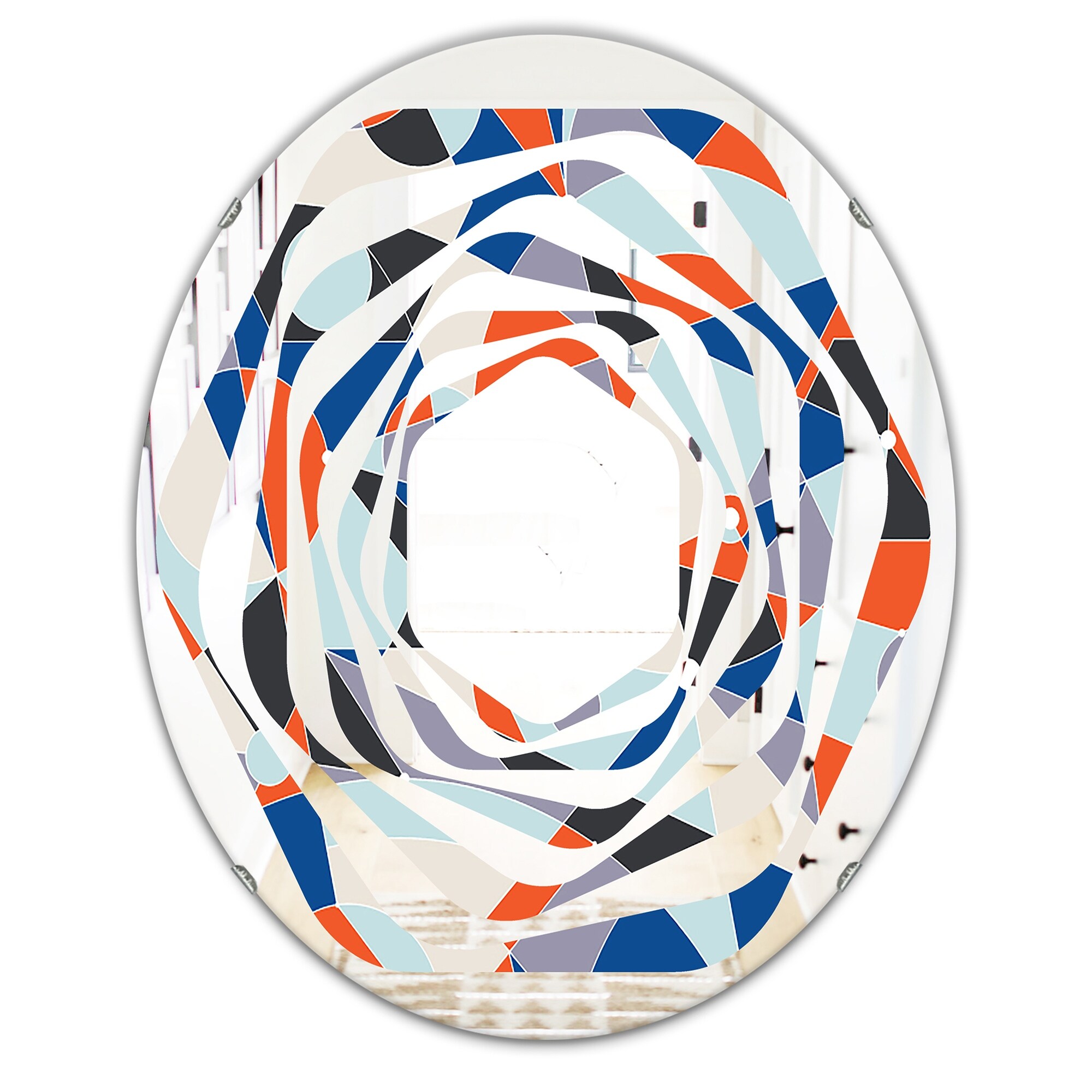 Designart 'Retro Geometric Grid IV' Printed Modern Round or Oval Wall Mirror - Whirl