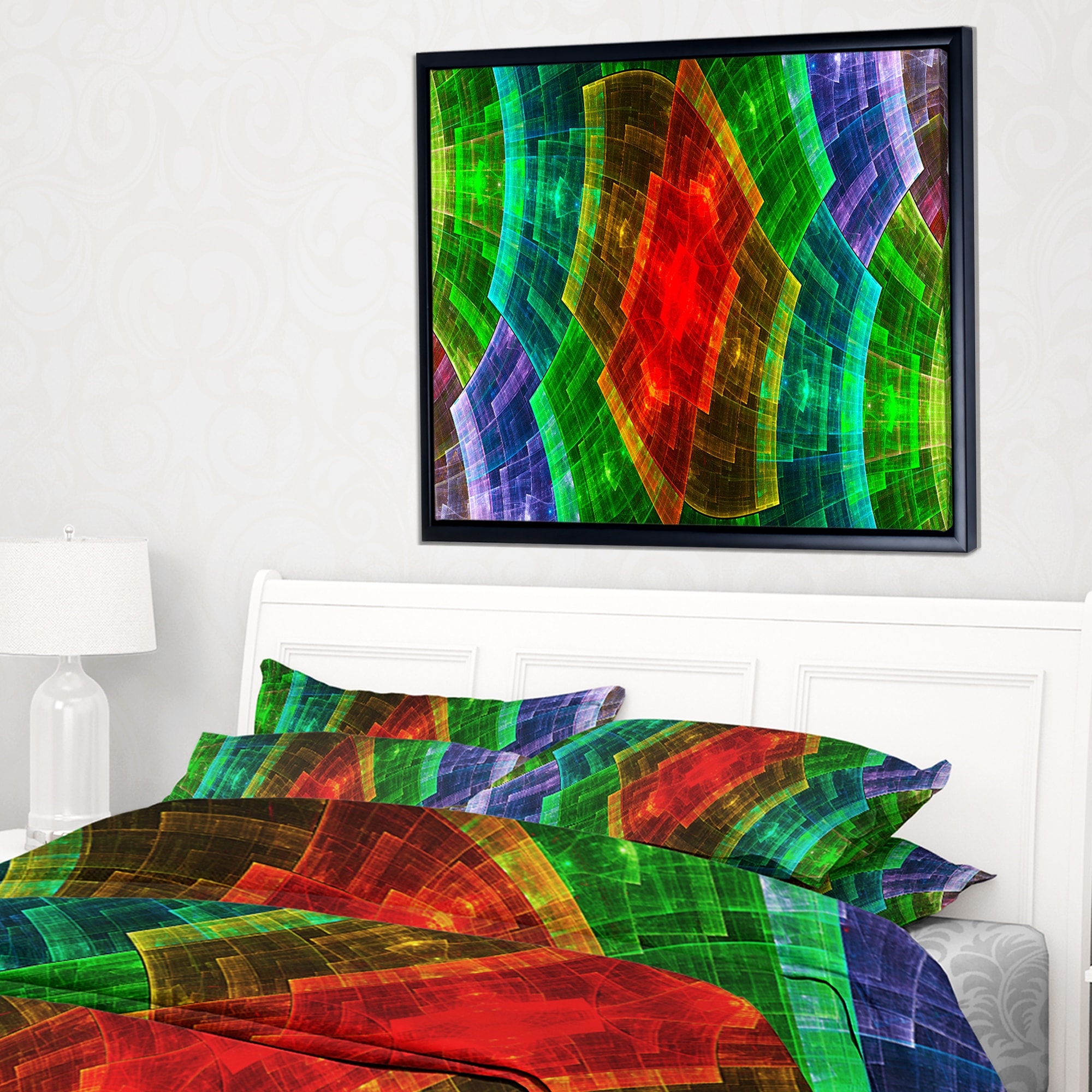 Designart "Multi Color Psychedelic Fractal Metal Grid" Abstract Art on Framed Canvas