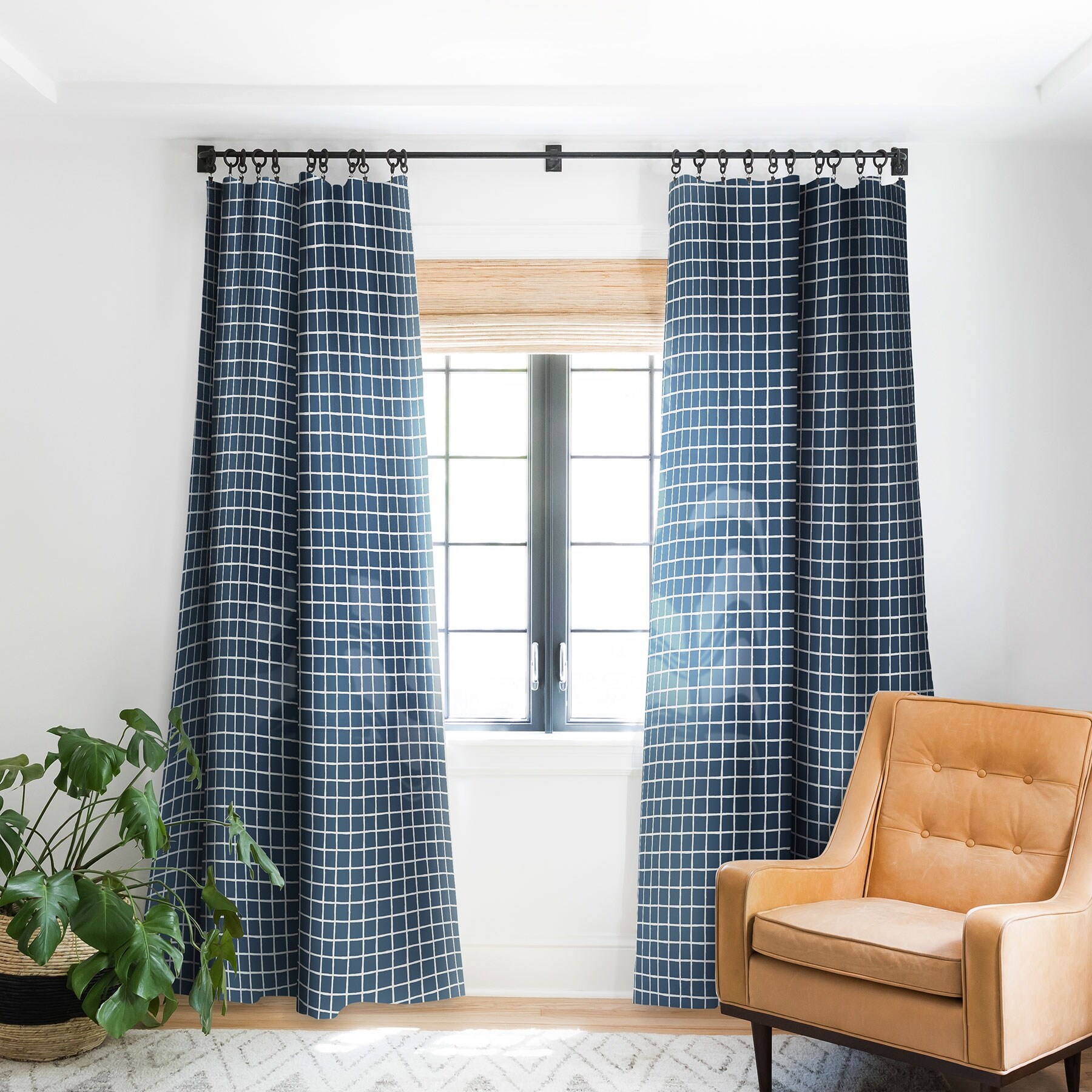 1-piece Blackout Grid Pattern Navy Made-to-Order Curtain Panel
