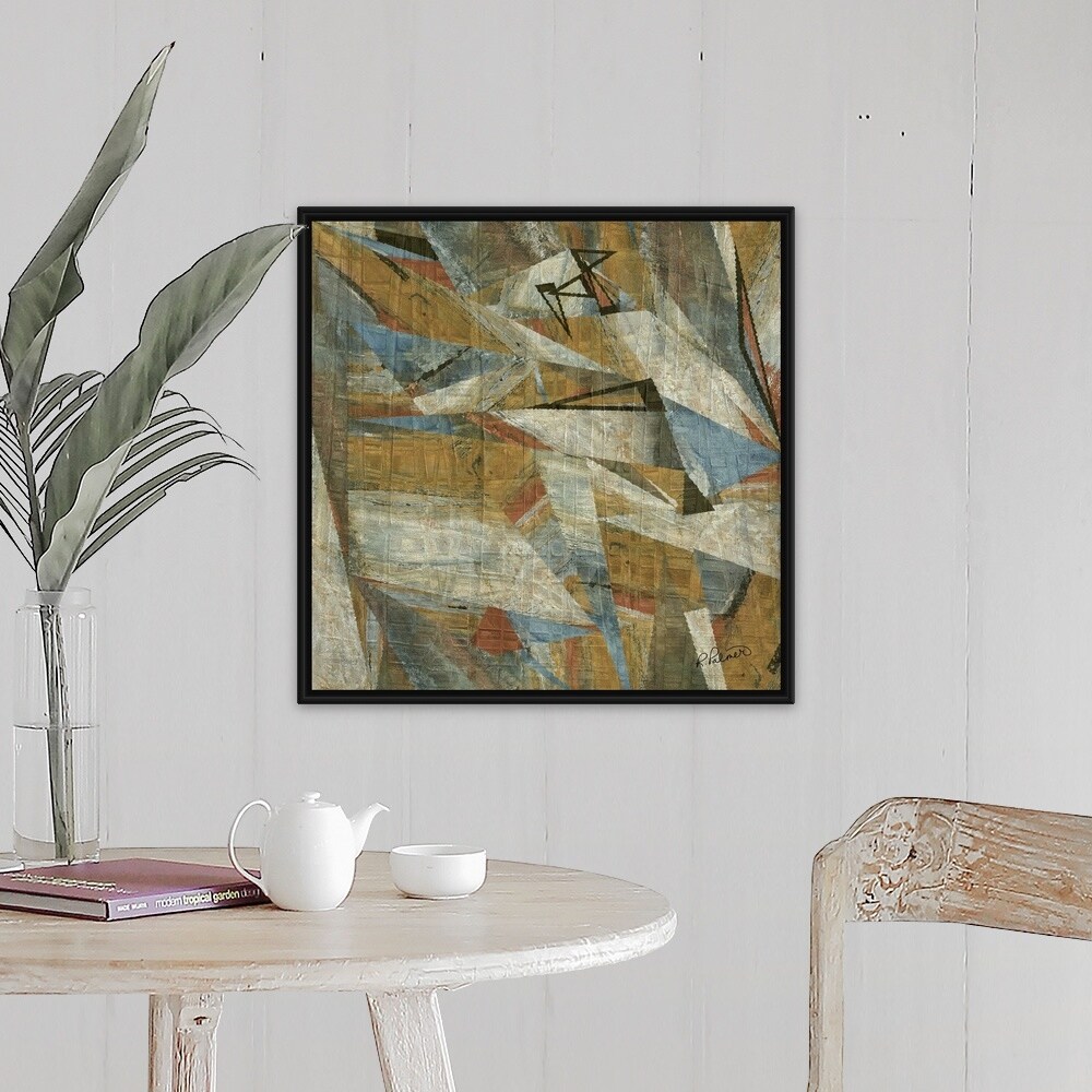 "Geometric Grid Neutral Two" Black Float Frame Canvas Art
