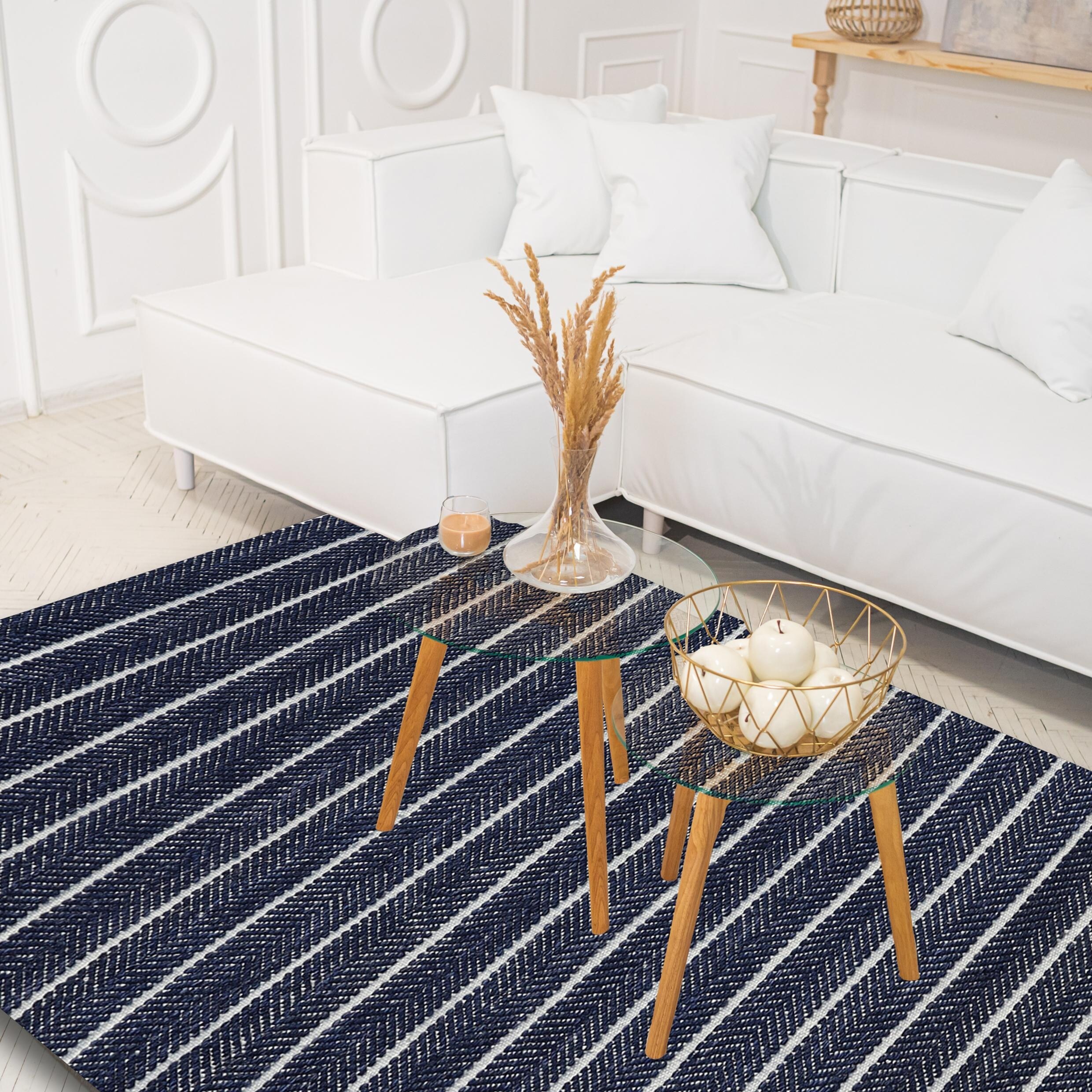 Hand Woven Blue & White Directional Striped Wool Rug by Tufty Home