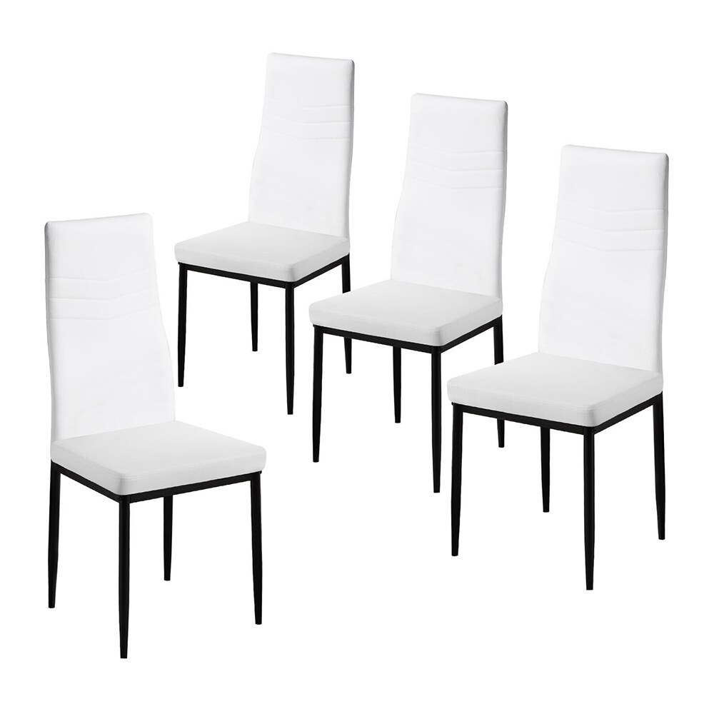Set of 4 Dining Chairs PU Leather Chairs Upholstered White - 1 7x 31