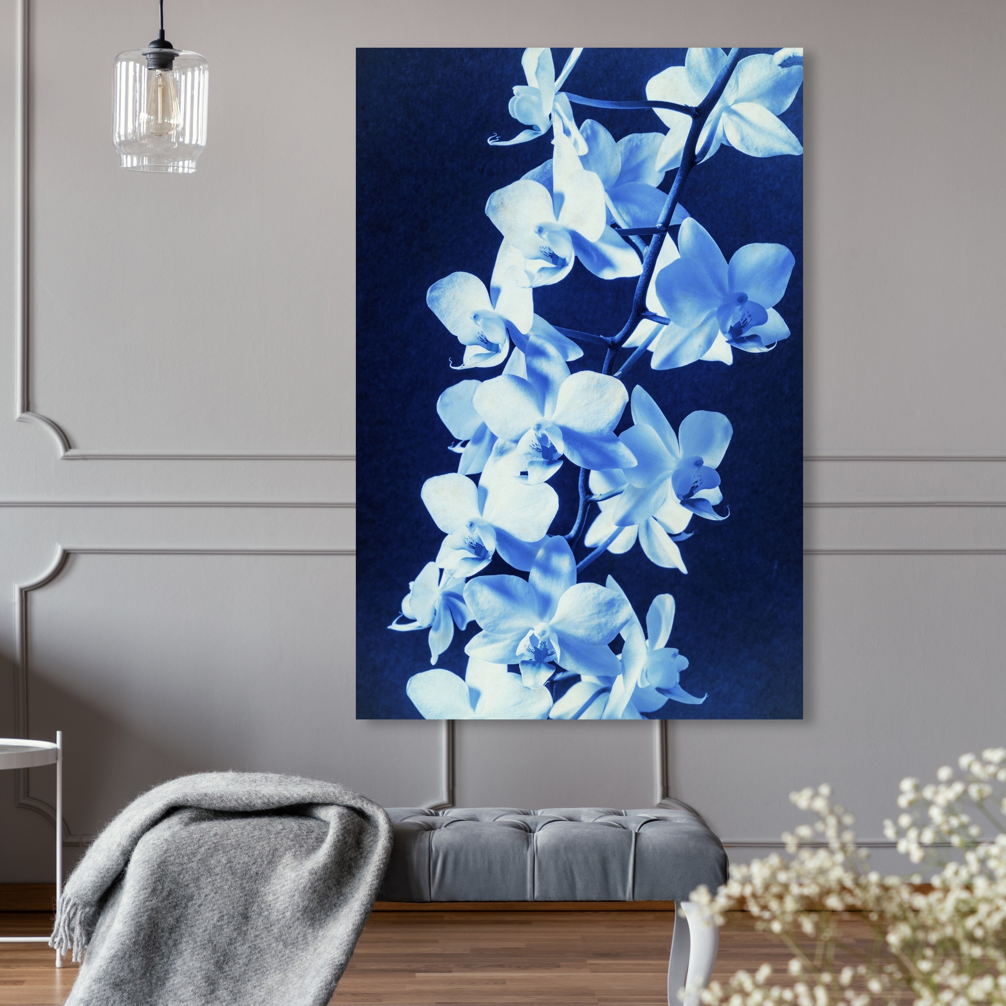 Oliver Gal 'Orchid Sun Print Cyanotype' Floral and Botanical Wall Art Canvas Print - Blue, White