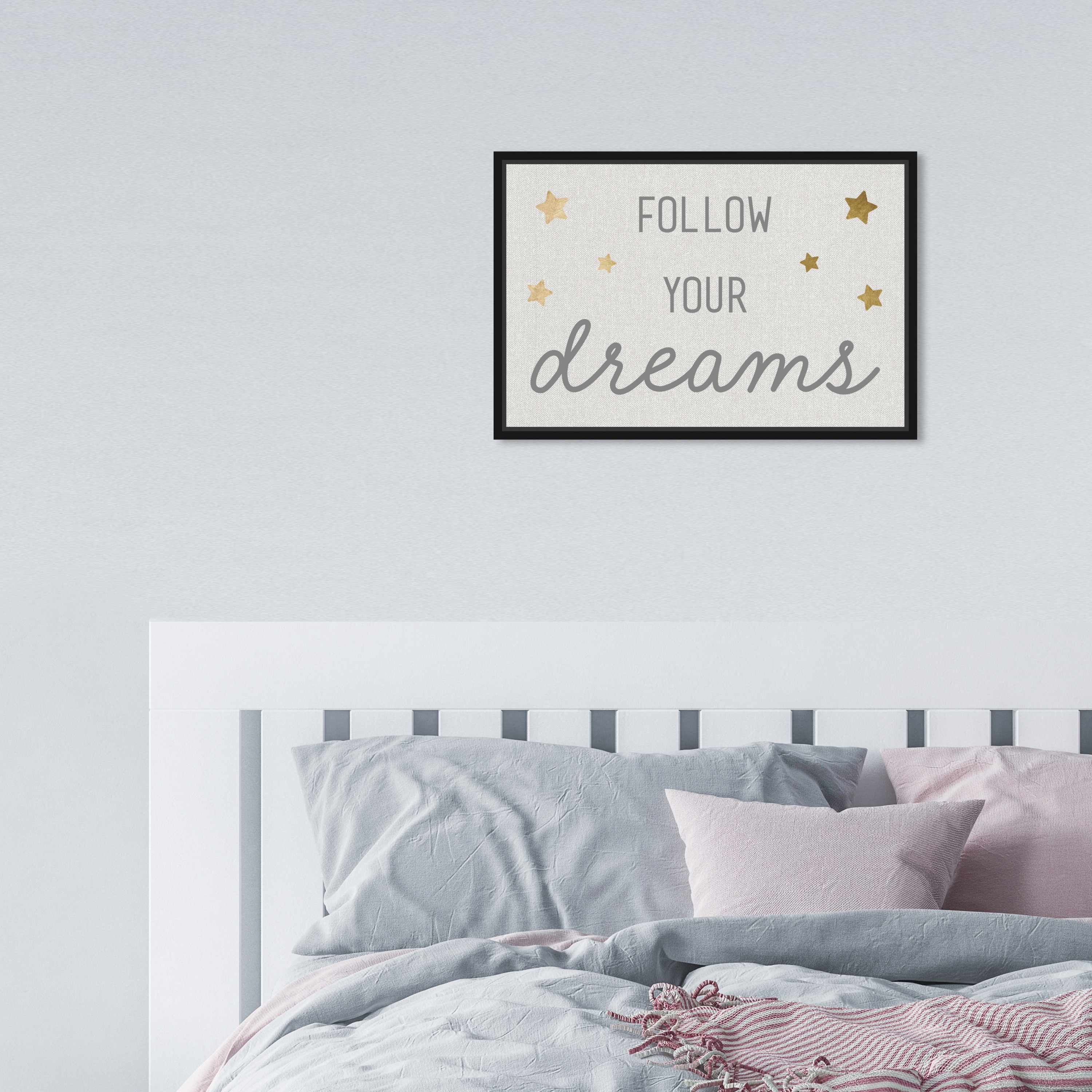 Oliver Gal 'Follow Your Dreams' Typography and Quotes Wall Art Framed Canvas Print Motivational - Gold, White