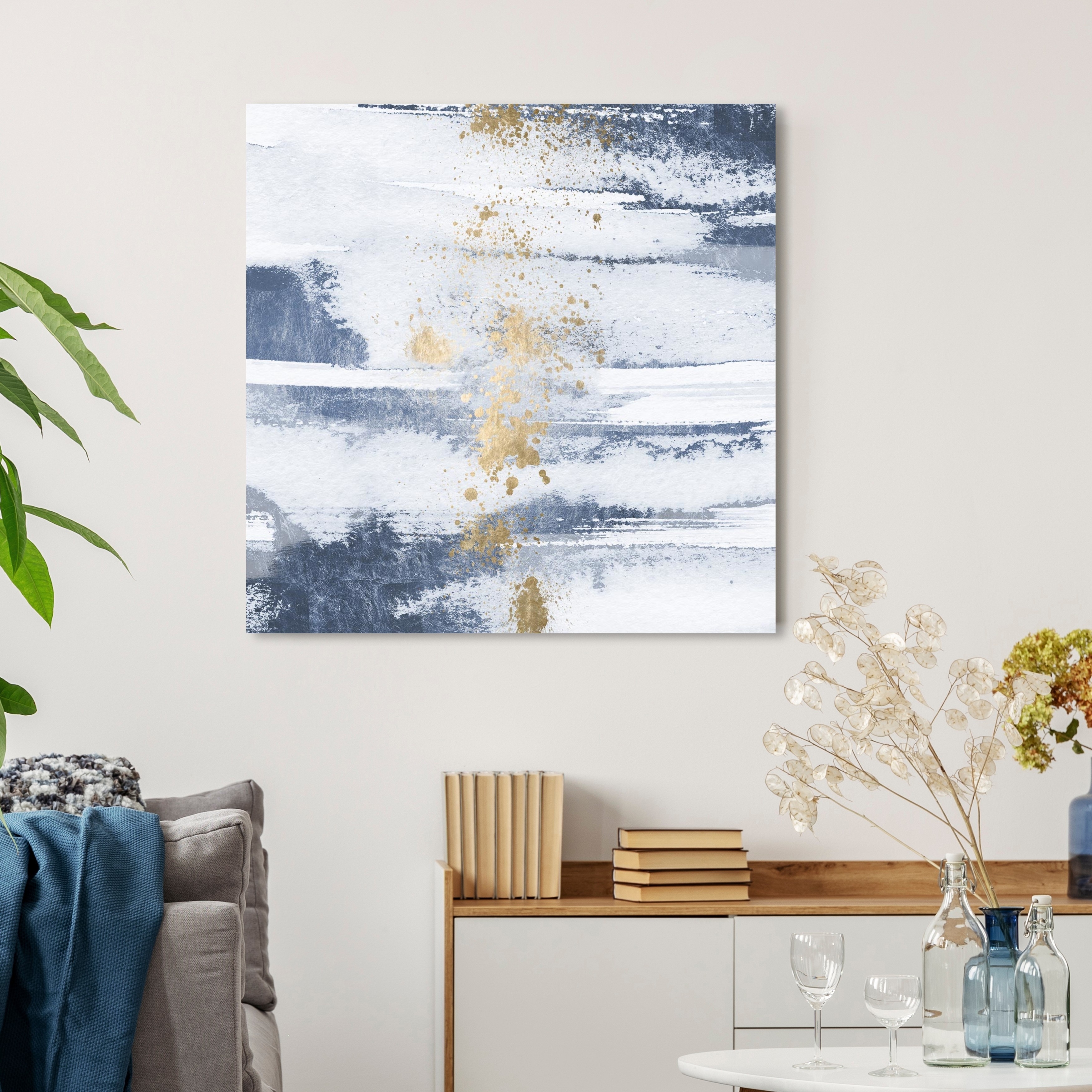 Oliver Gal 'Sun and Rain Sea' Abstract Wall Art Canvas Print - Blue, Gold
