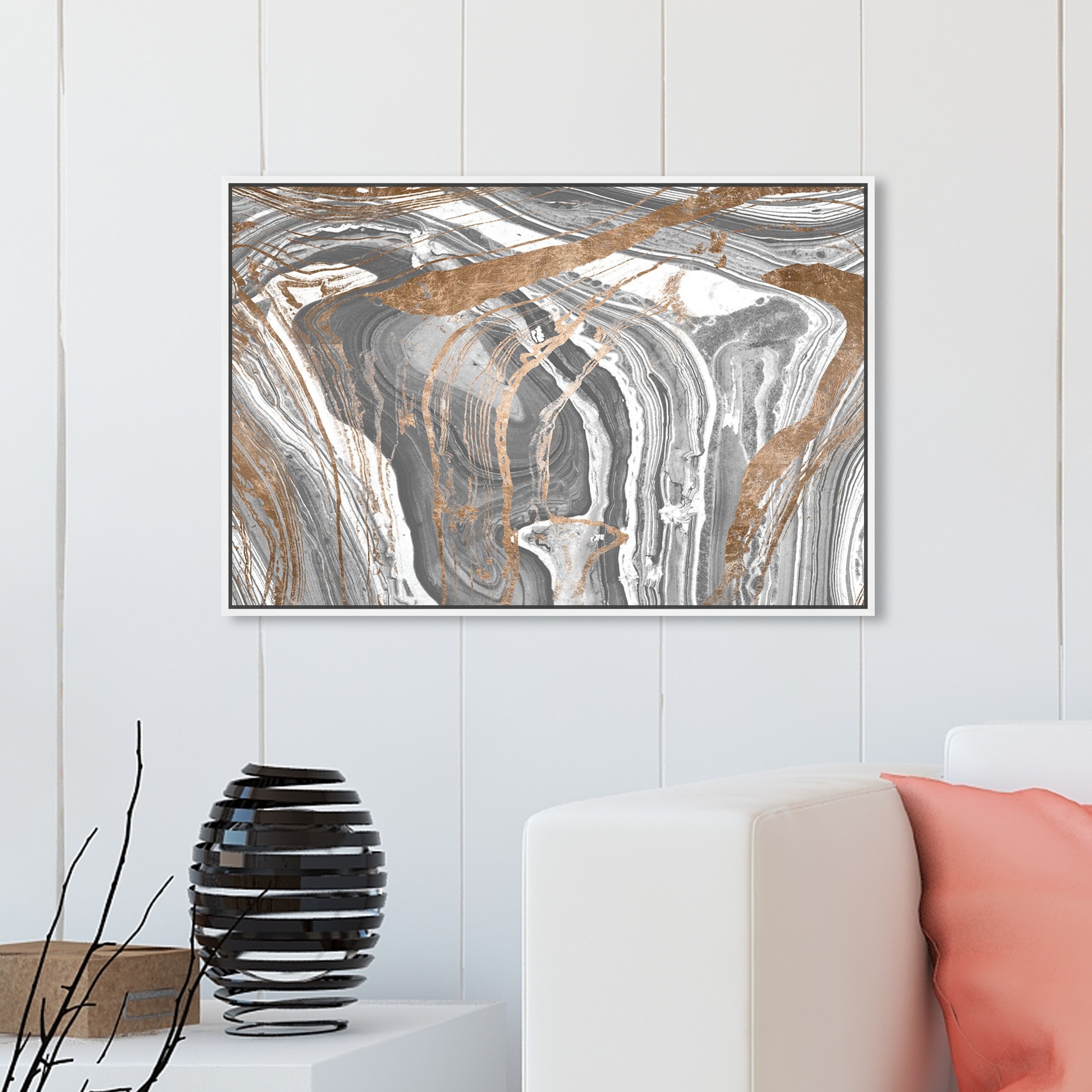 Oliver Gal 'Marble Copper' Abstract Wall Art Framed Canvas Print Crystals - Bronze, Gray